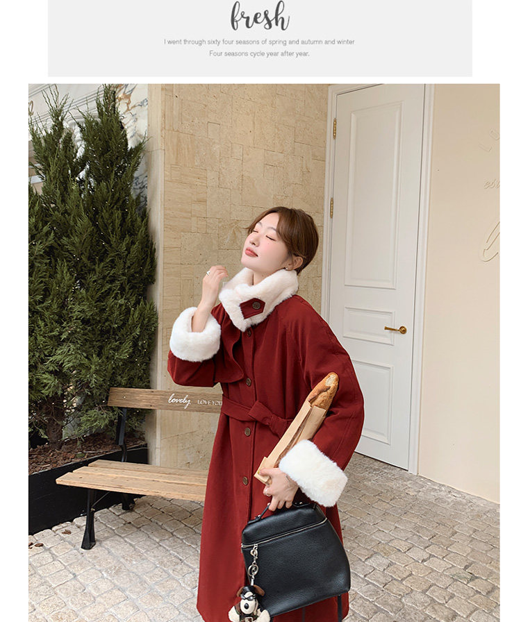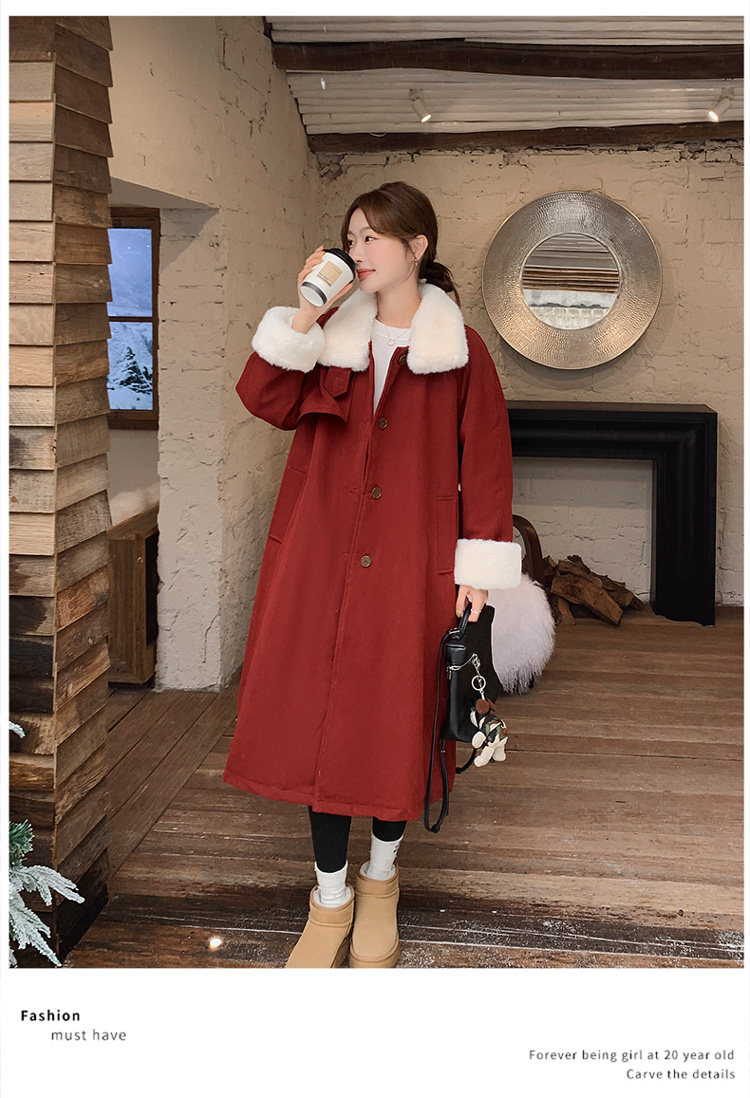 College style red woolen coat for women winter 2025 new parka plus velvet thickened mid-length plush coat
