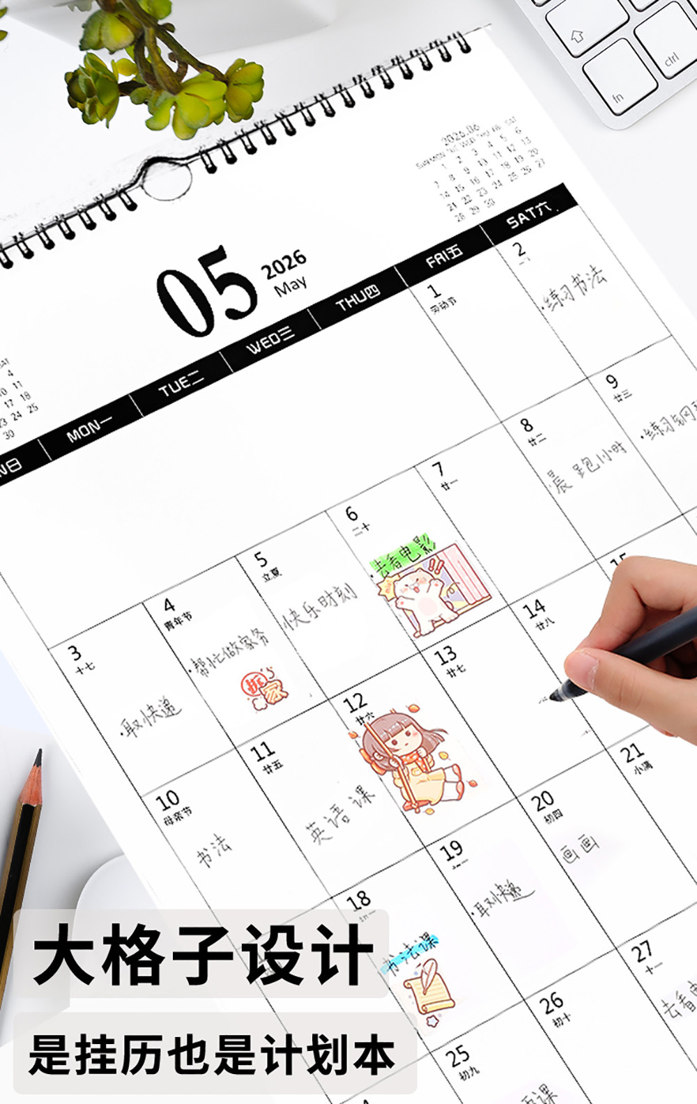 Wall Calendar 2026 Home Ins Wind Horse Year Creative Wall Decoration Painting Large Hanging Check-in Calendar Planner Wall Sticker Calendar This Plan Postgraduate Entrance Exam Countdown Monthly Calendar 2026
