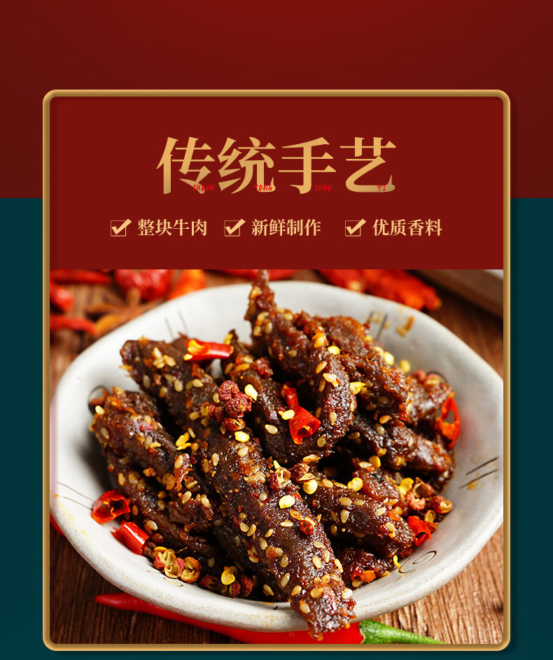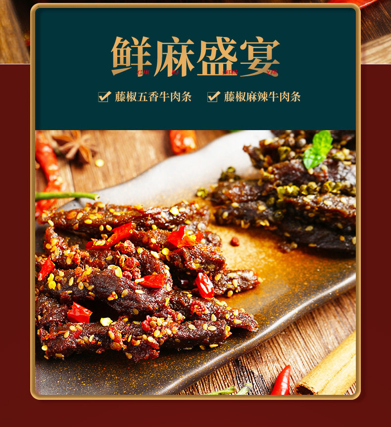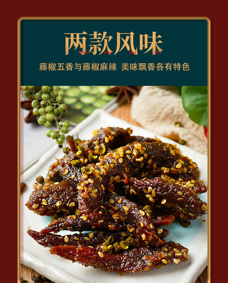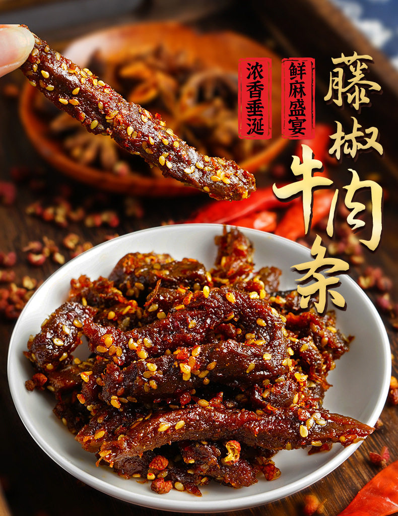 Taste Rattan pepper spicy beef strips 120g,Vine pepper five-spice beef strips 120g