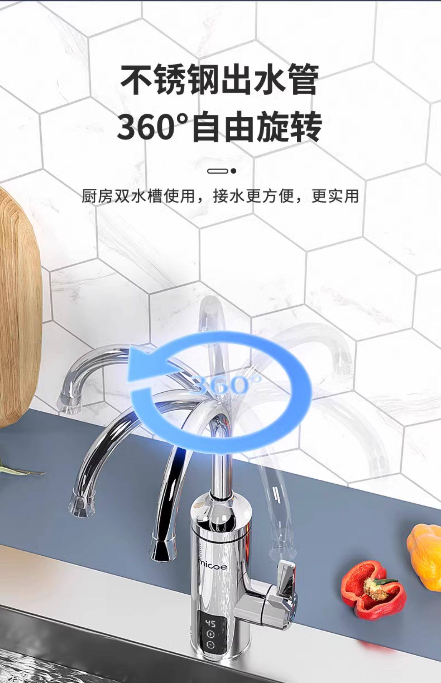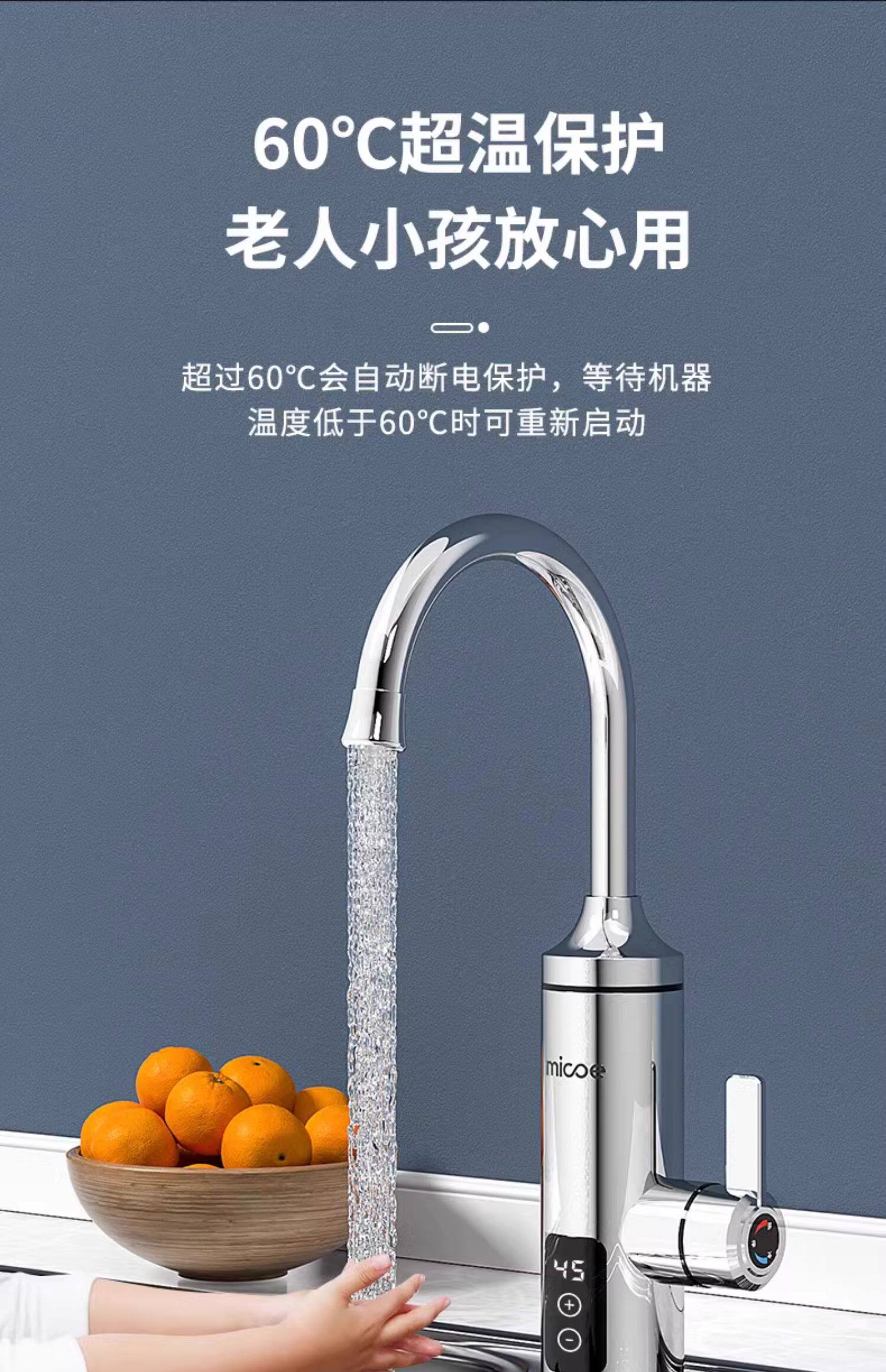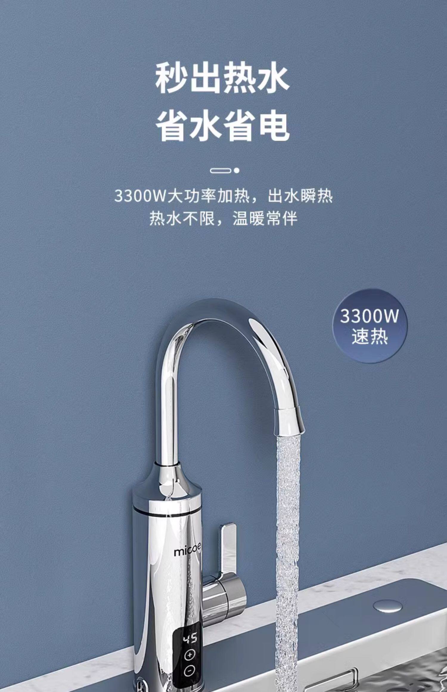 Four Seasons Muge Electric Hot Water Faucet Instant Heating Bathroom Sink Stainless Steel Balcony Kitchen Electric Water Heater