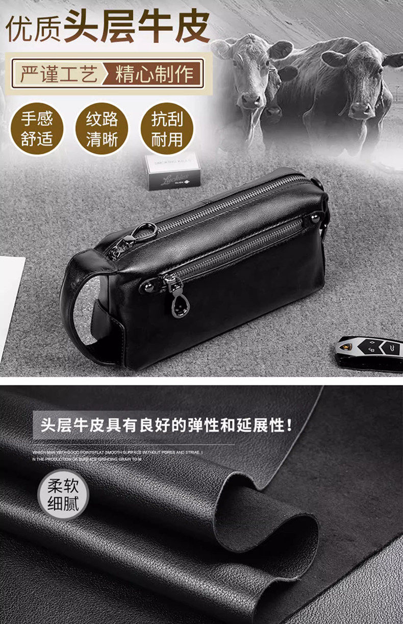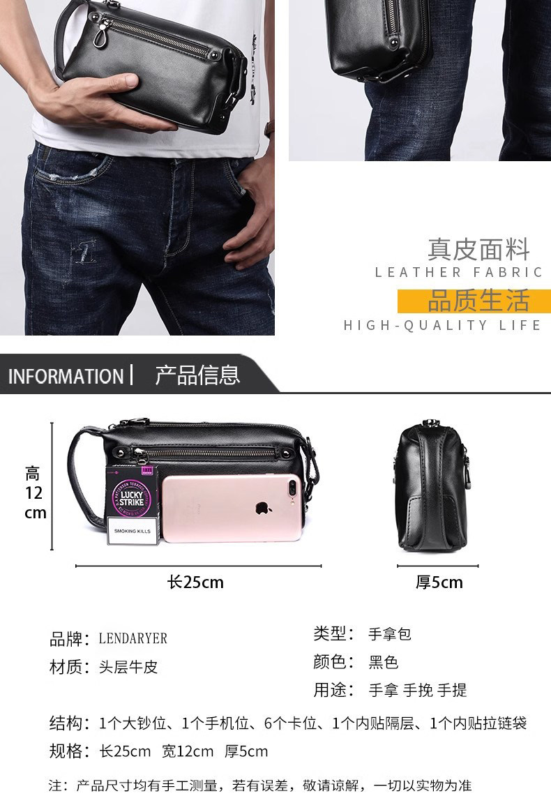 Lendaryer Men's Handbag Genuine Leather High-End Portable Mobile Phone Bag First Layer Cowhide Clutch Bag Men's High-End Small Bag