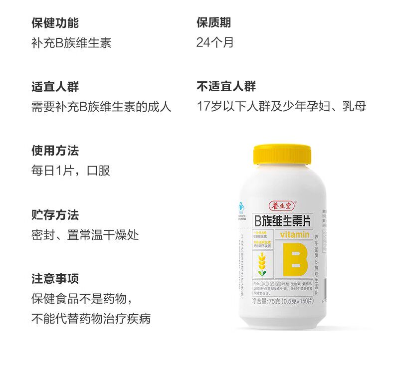 Yangshengtang B Vitamin Tablets with High Content of B Vitamins, Multi-Complex Vb, Biotin, Folic Acid, B2, Genuine Product