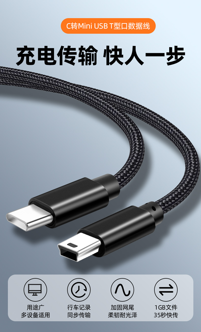 Color Classification 0.5m[Upgraded Braided T-Mouth]Type-C to Mini USB Classic Black,1m[Upgraded Braided T-Mouth]Type-C to Mini USB Classic Black,1.5m[Upgraded Braided T-Mouth]Type-C to Mini USB Classic Black,2m[Upgraded Braided T-Mouth]Type-C to Mini USB Classic Black,3m[Upgraded Braided T-Mouth]Type-C to Mini USB Classic Black