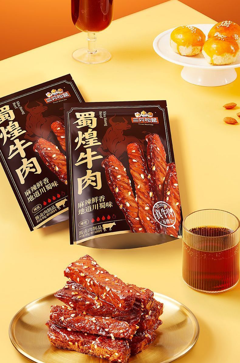 Three Squirrels Shu Huang Beef Spicy Flavor 80g Casual Snacks Value Beef Jerky Spicy Craving Snacks