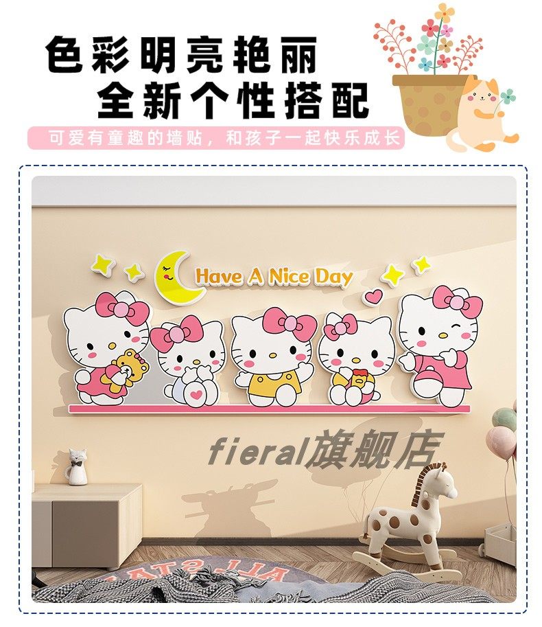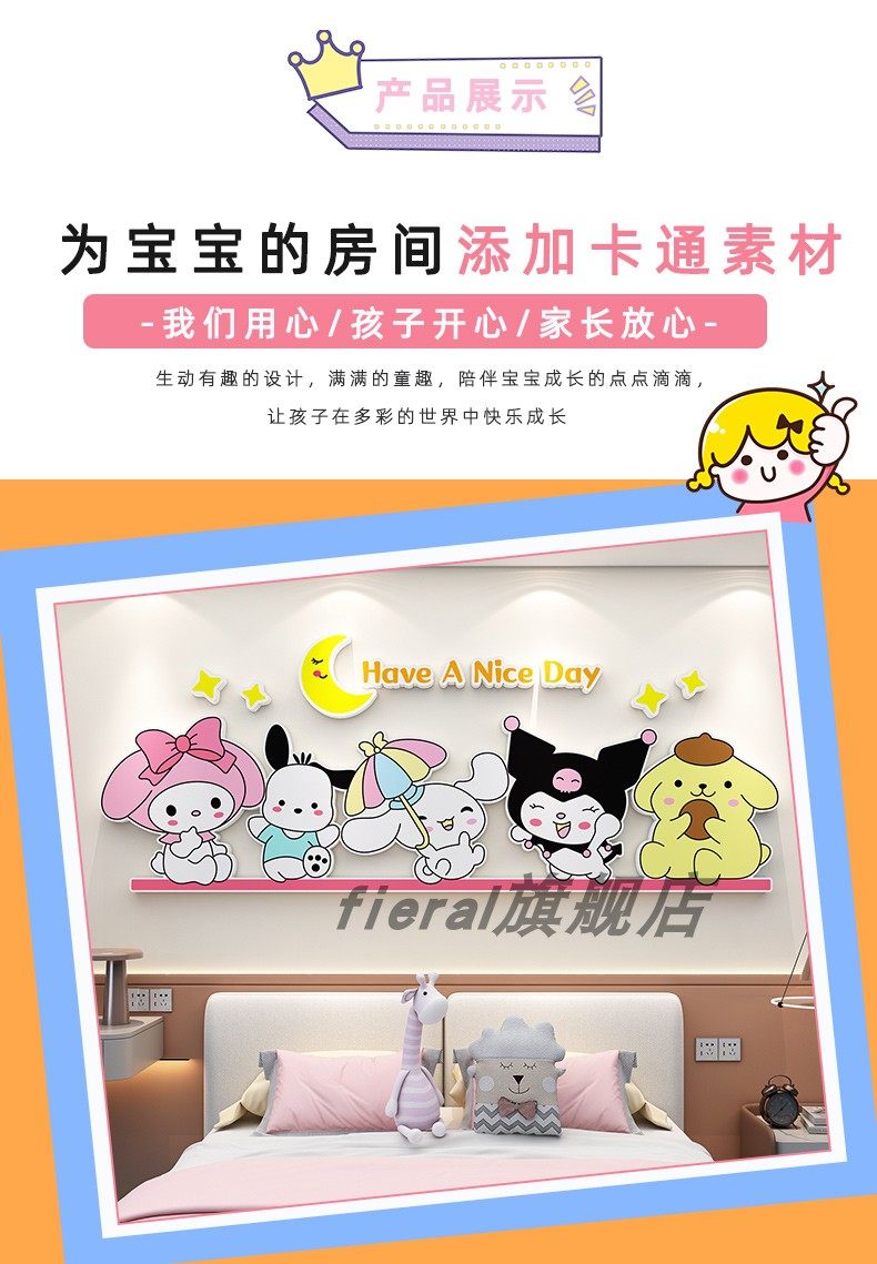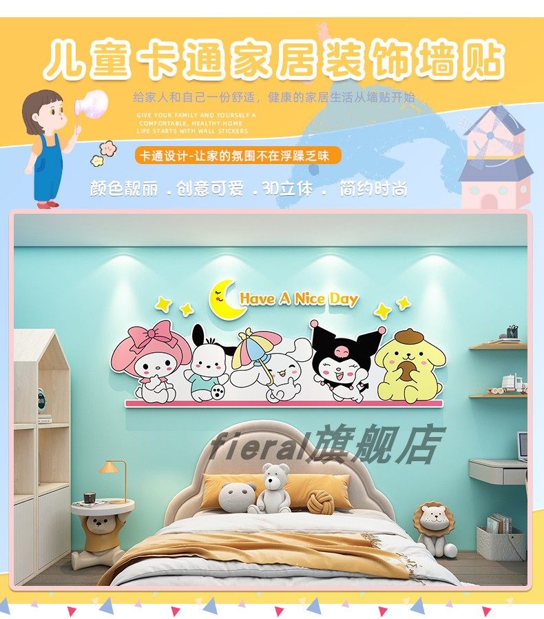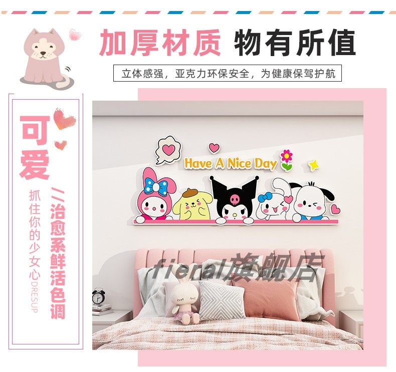 Children's Room Decoration Cartoon Kuromi Cinnamon Dog Wall Stickers Boys and Girls Bedroom Bedside Background Wall