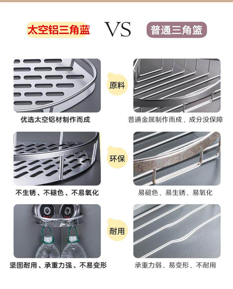 Kitchen Storage Rack, Bathroom No-Drill Suction Wall-Mounted Triangular Wall Rack, Titanium Alloy Bathroom Storage Rack