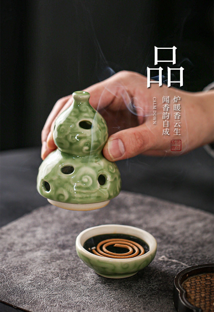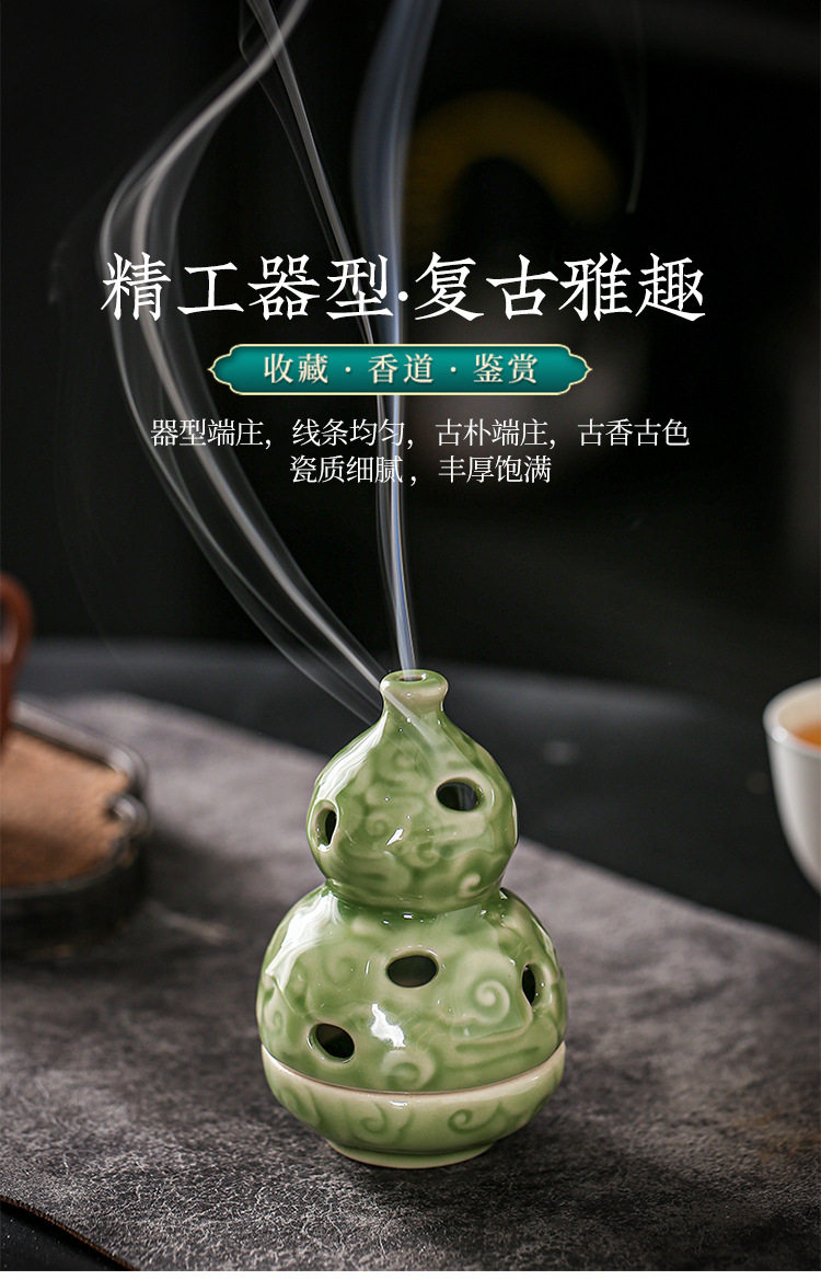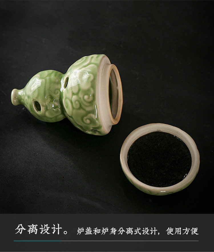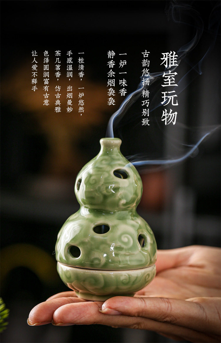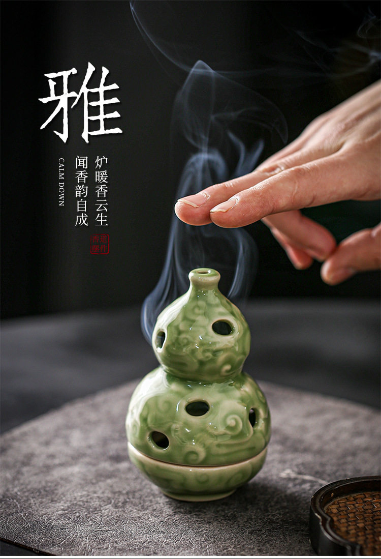 Zen-Inspired Celadon Gourd-Shaped Incense Burner Ornament for Home Indoor Tea Ceremony Creative Chinese-Style Incense Holder Incense Burner Incense Device Incense Burner