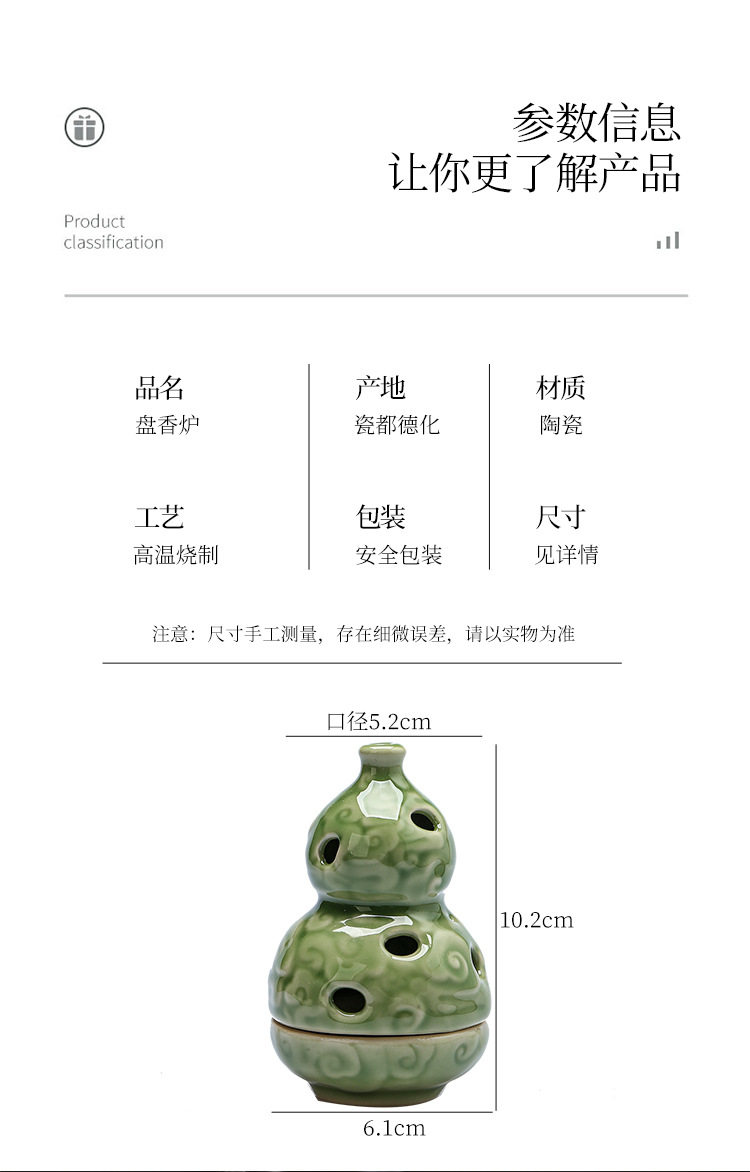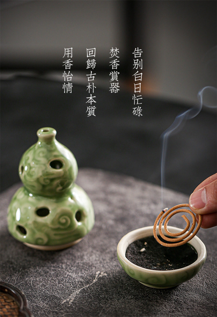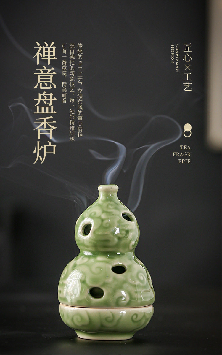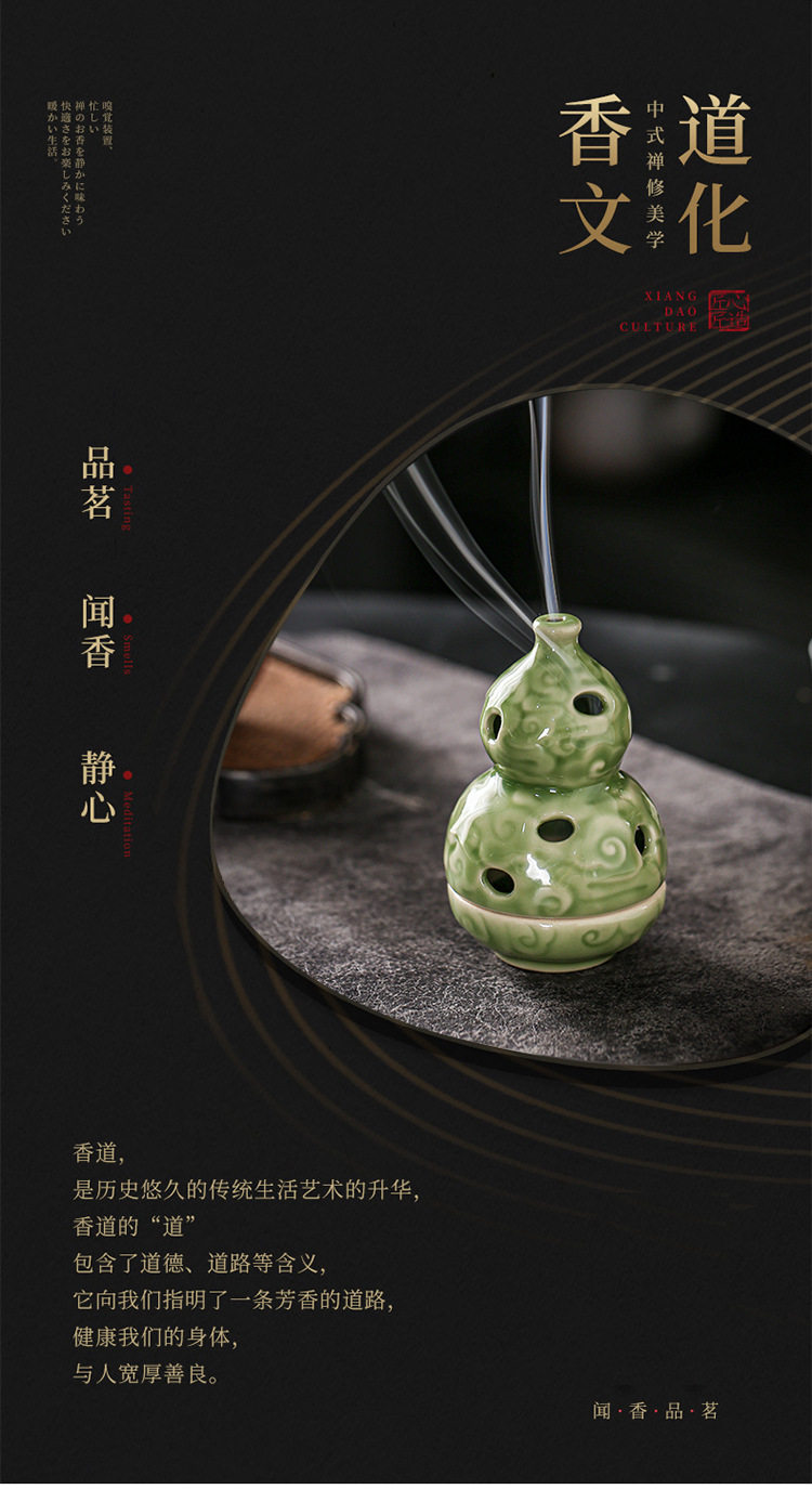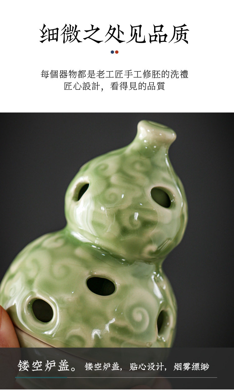 Zen-Inspired Celadon Gourd-Shaped Incense Burner Ornament for Home Indoor Tea Ceremony Creative Chinese-Style Incense Holder Incense Burner Incense Device Incense Burner