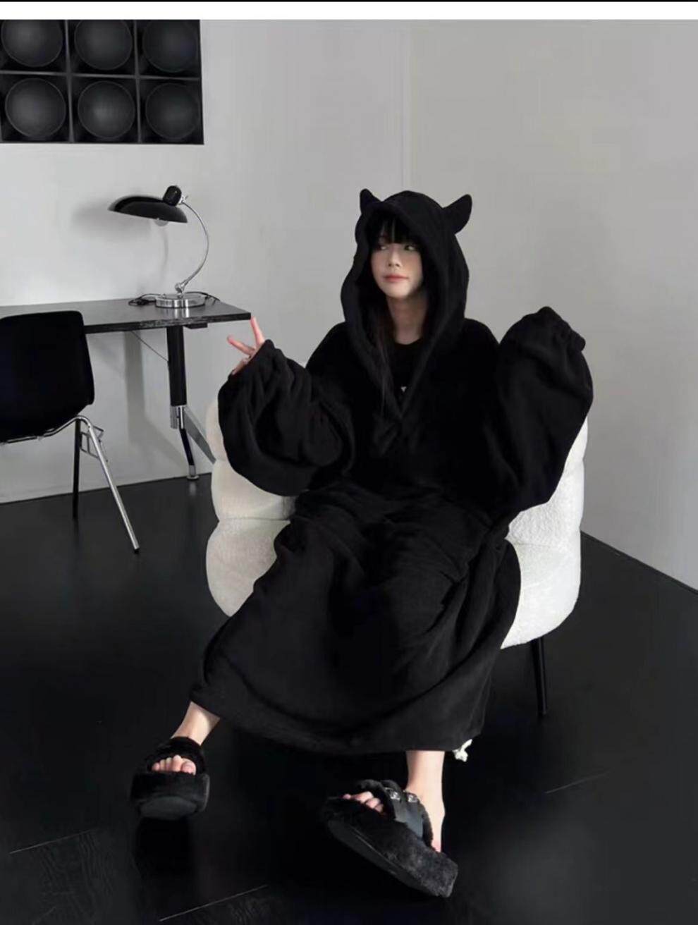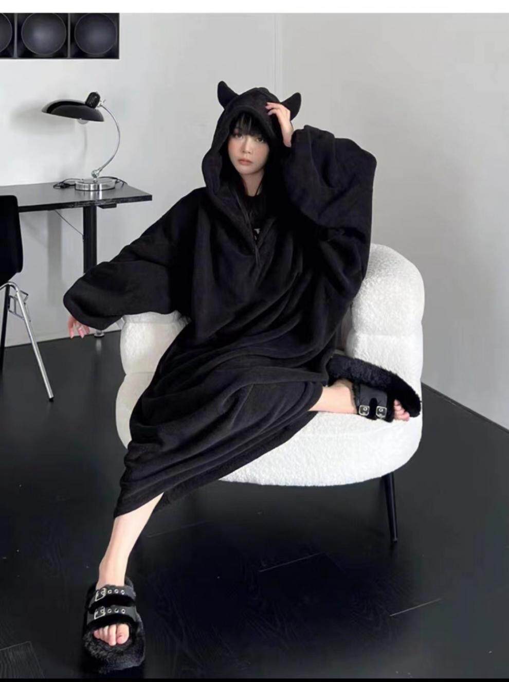 Vockoo Little Devil Pajamas for Women Winter New Coral Velvet Nightgown Internet Celebrity High-Looking Student Couple Can Be Worn Outside