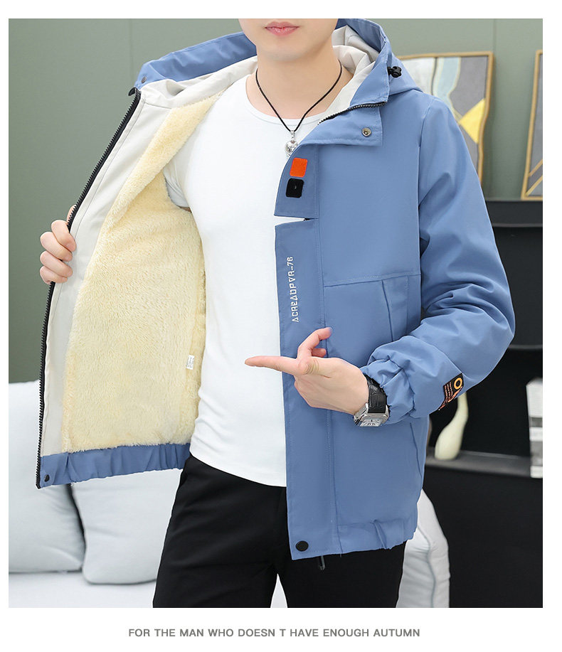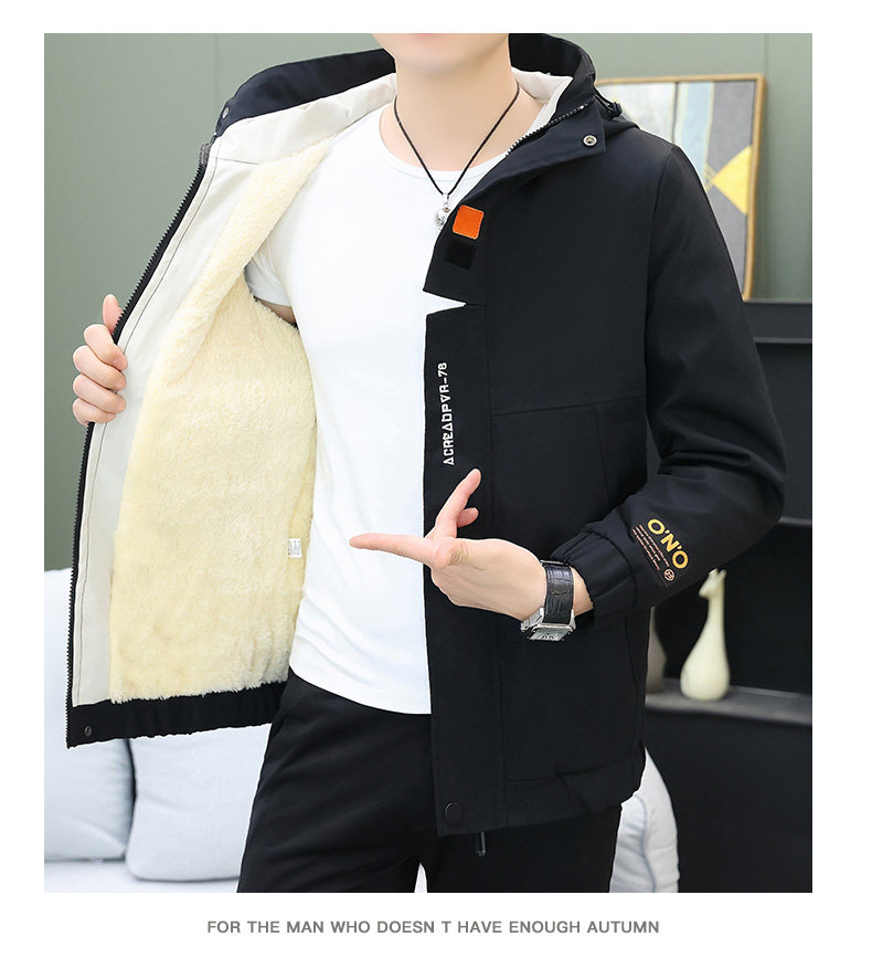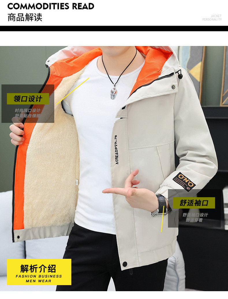 Men's Winter Jacket with Fleece Lining, Thickened, Trendy Brand, Casual Jacket, Hooded Sports Top, Warm Youth Cotton Clothing