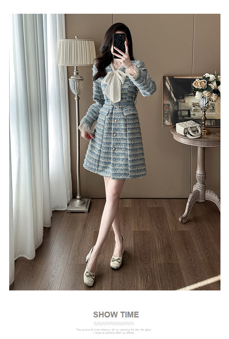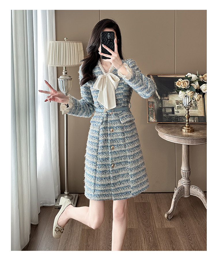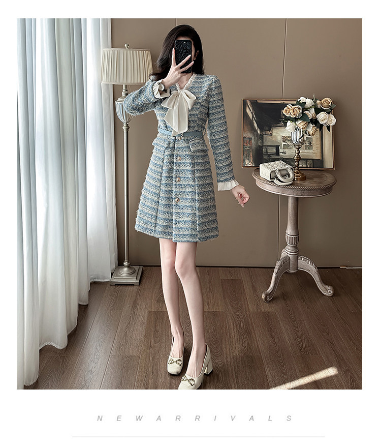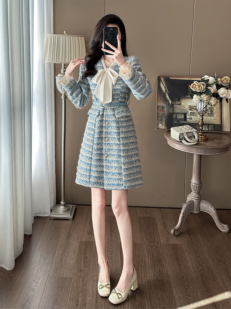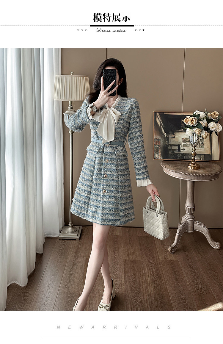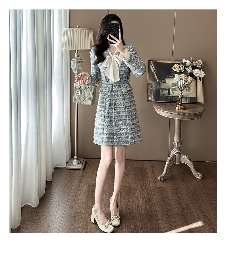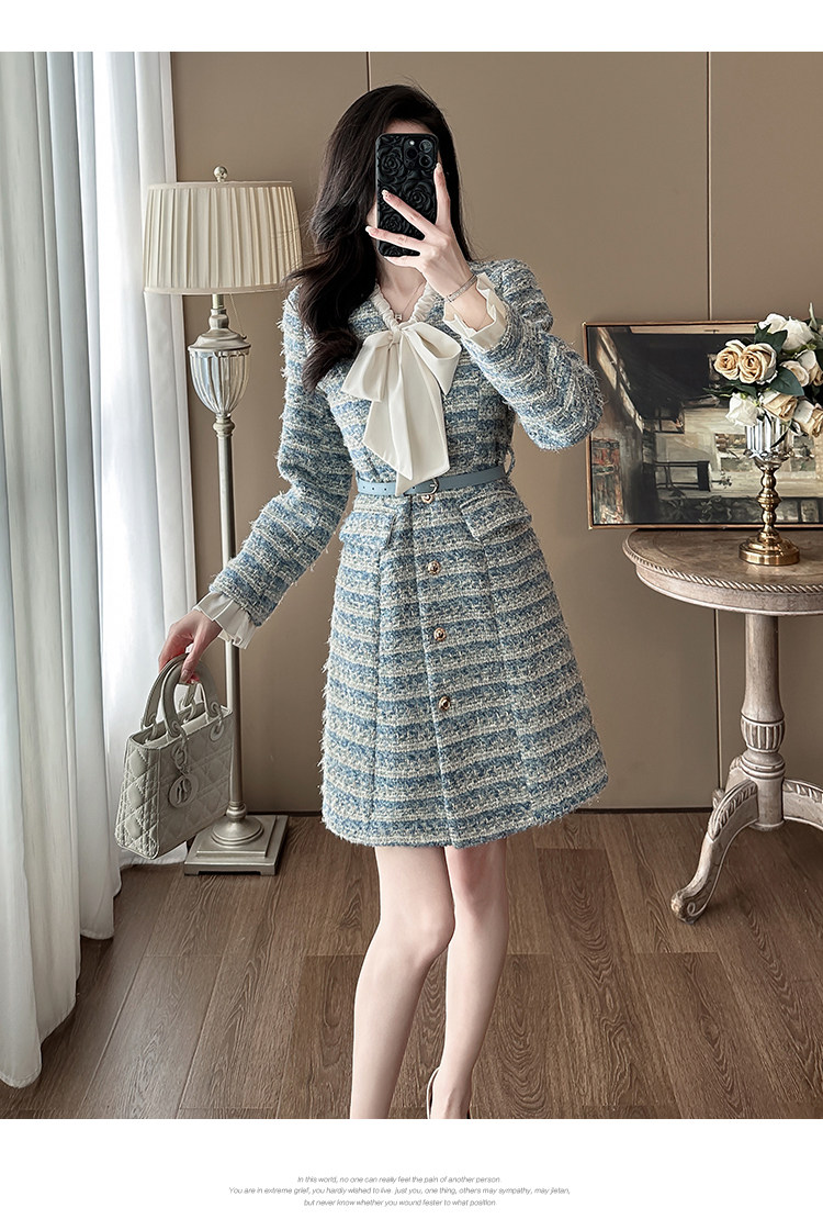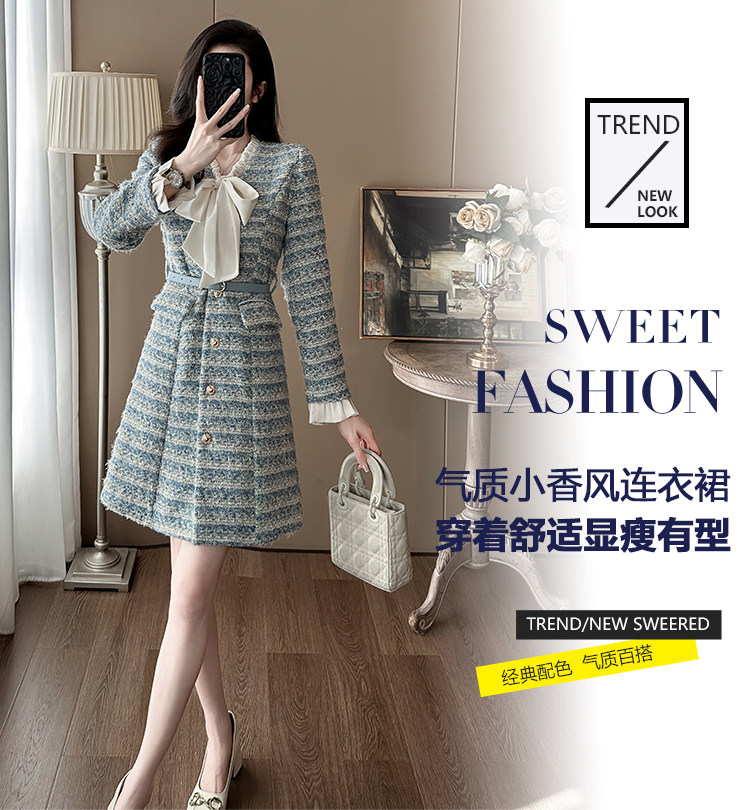 French socialite high-end skirt women's autumn and winter design rich daughter style temperament waist small fragrant dress