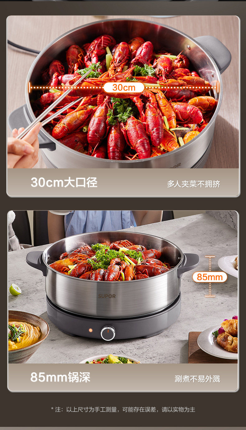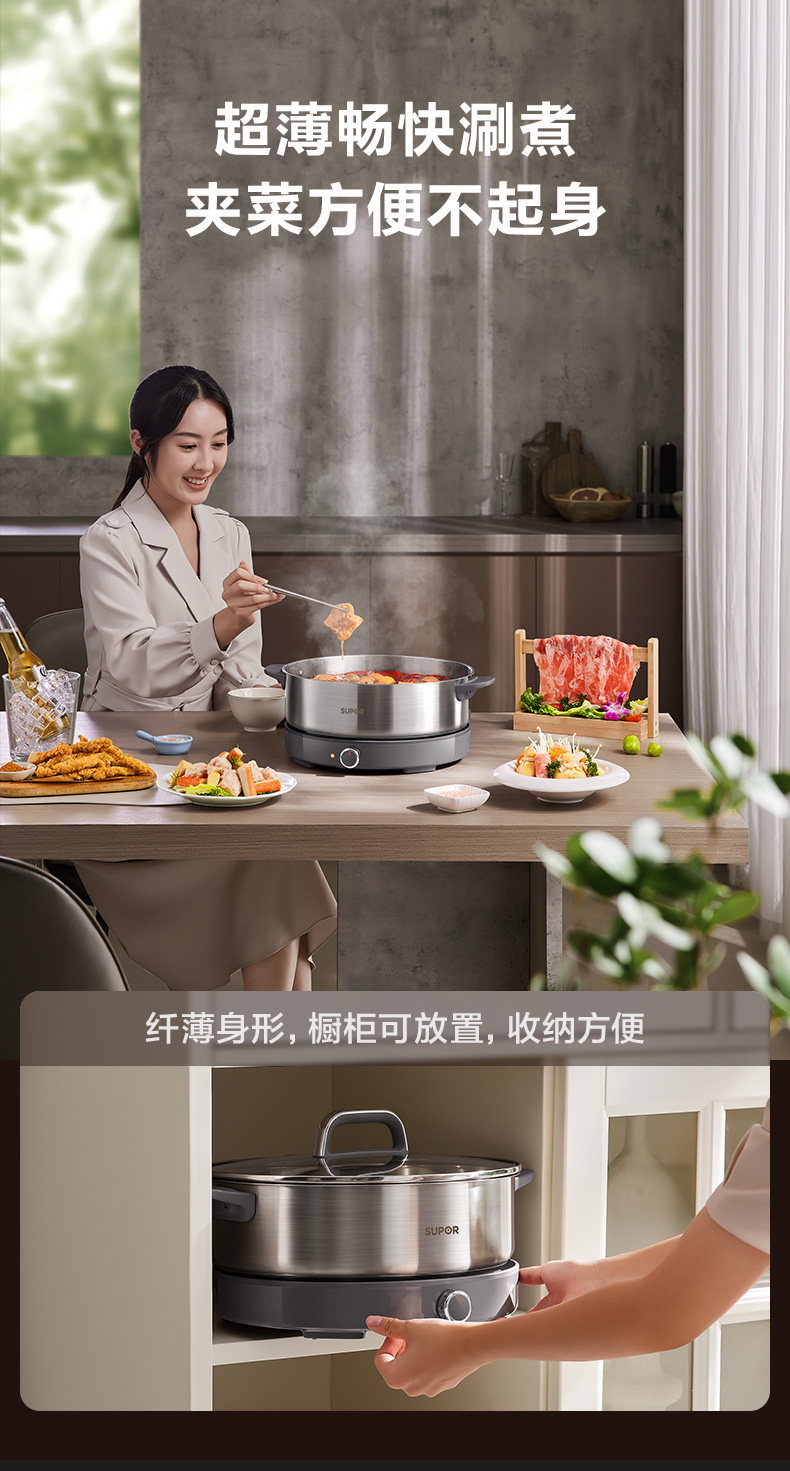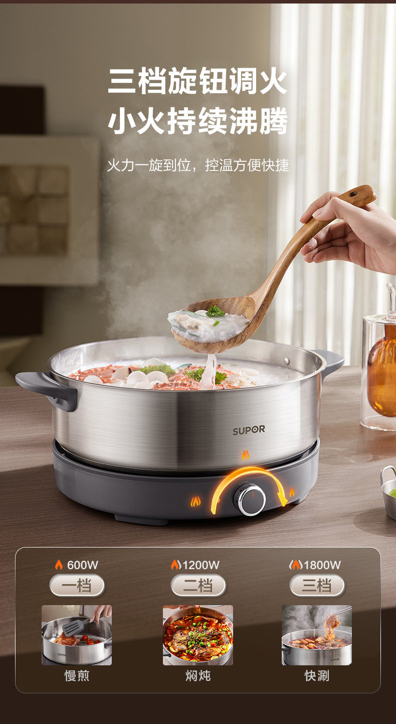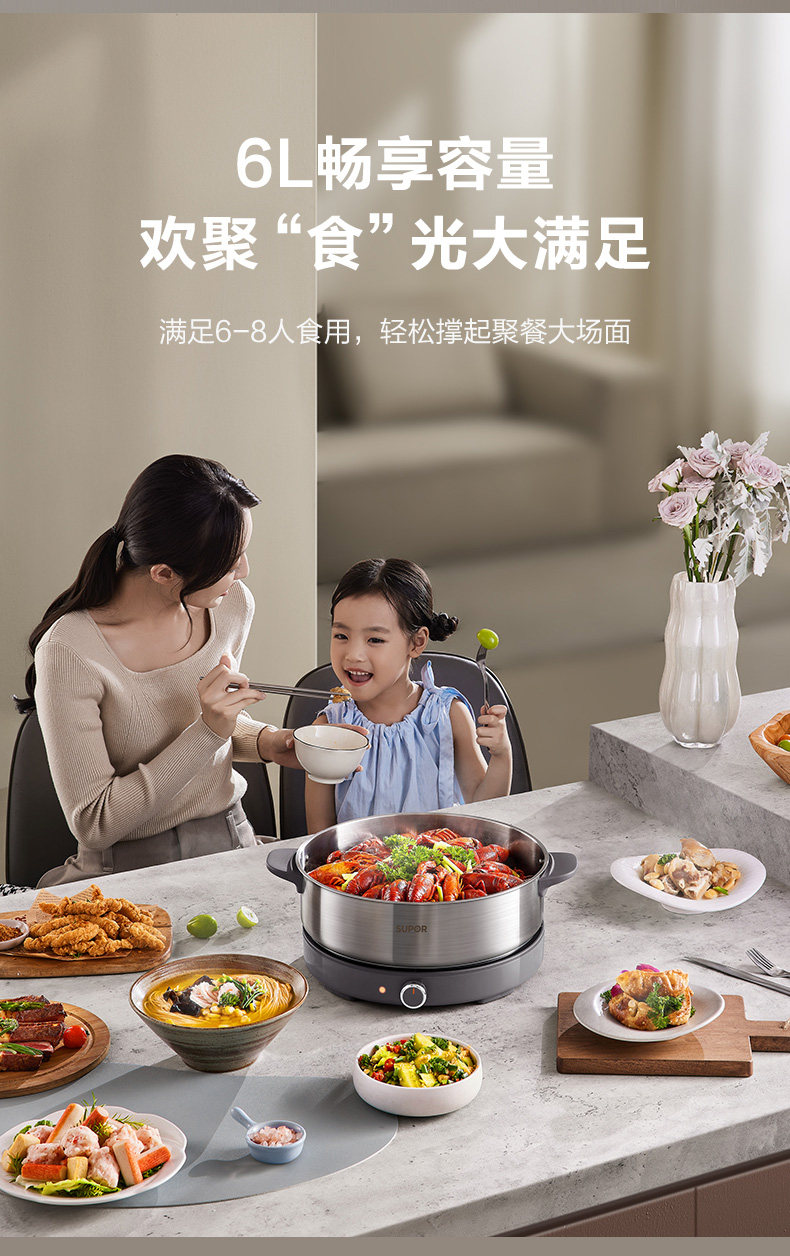 Supor Electric Hot Pot, Detachable Electric Frying Pan, Multi-Functional Cooking Pot for Frying and Stir-Frying, 2024 New Model