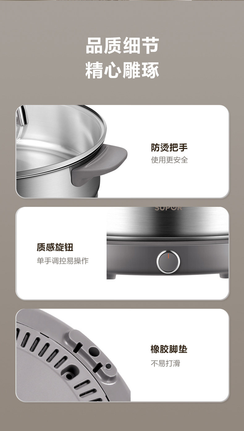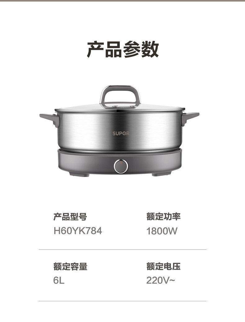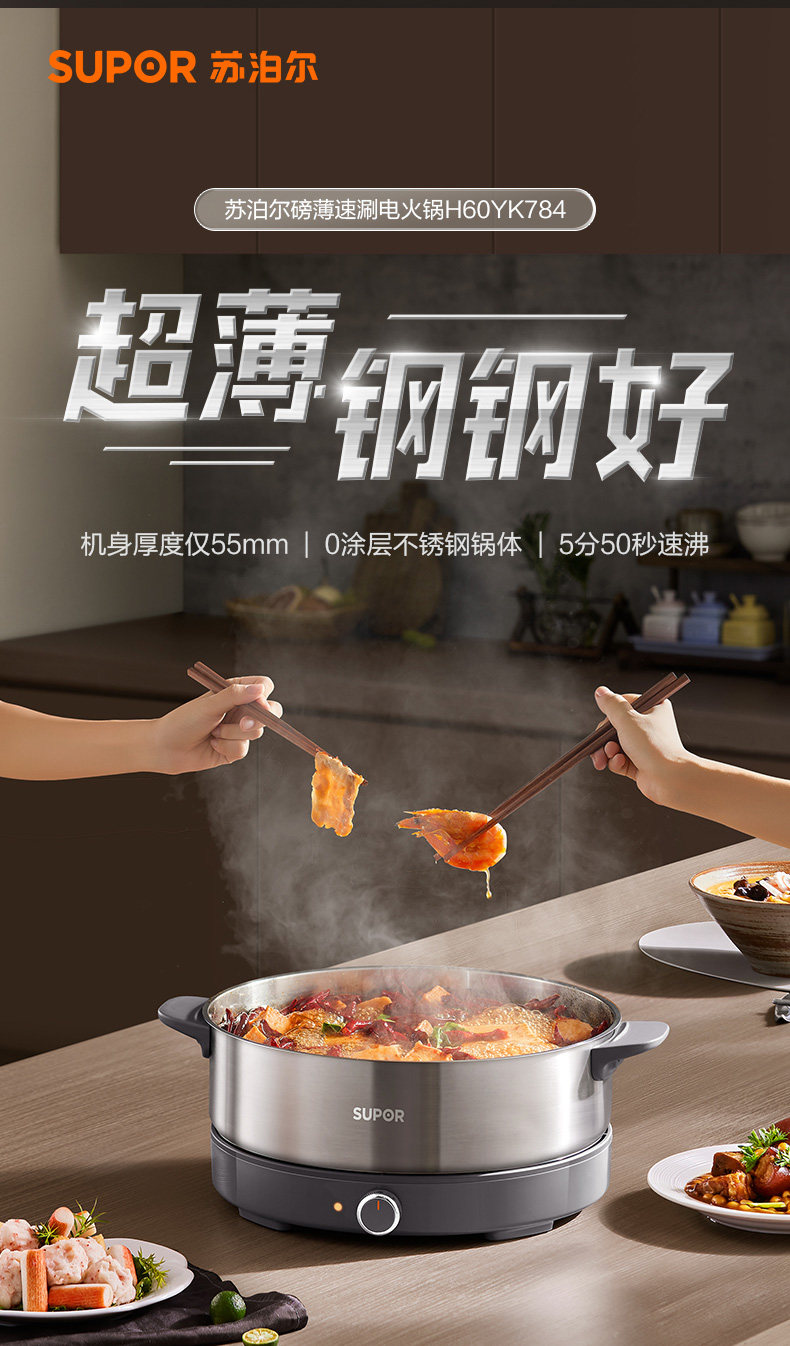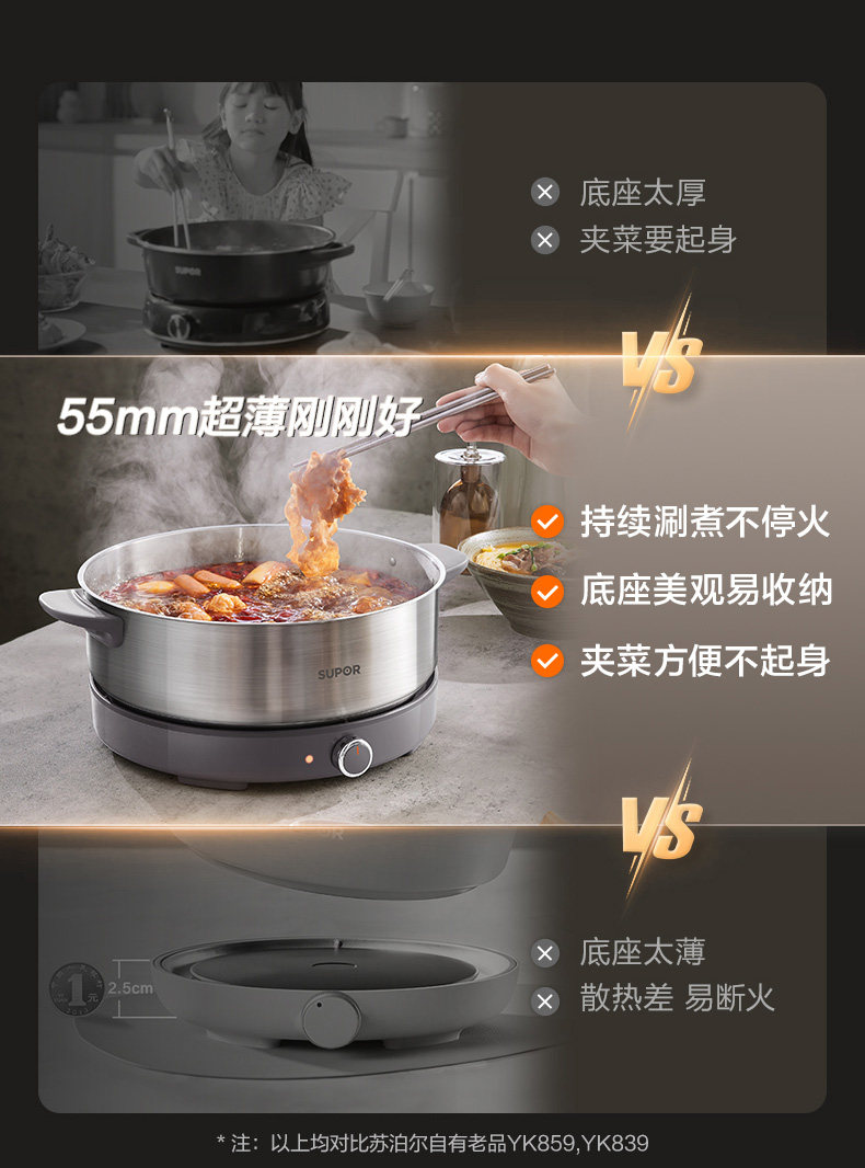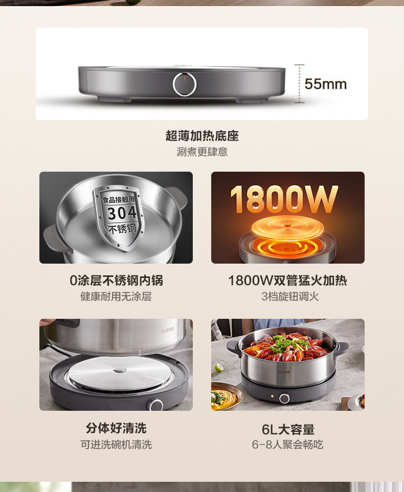 Supor Electric Hot Pot, Detachable Electric Frying Pan, Multi-Functional Cooking Pot for Frying and Stir-Frying, 2024 New Model