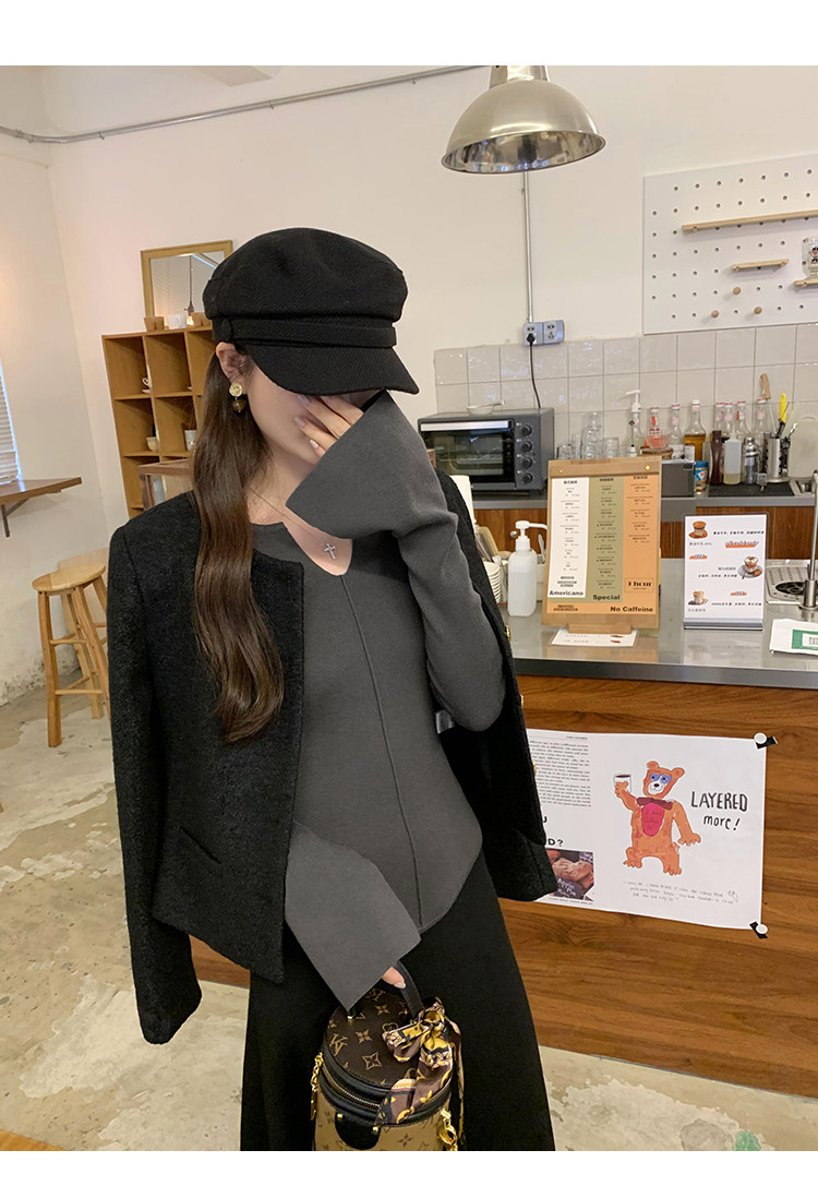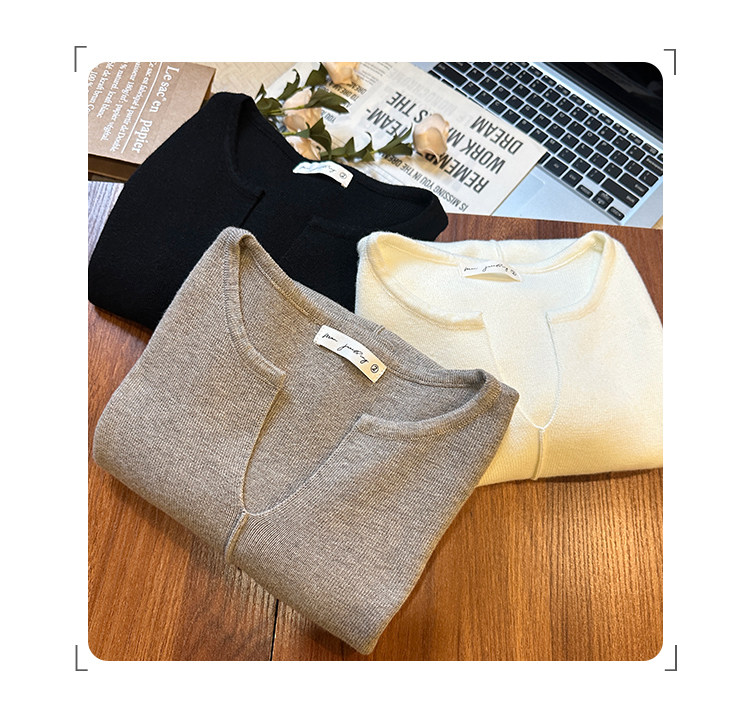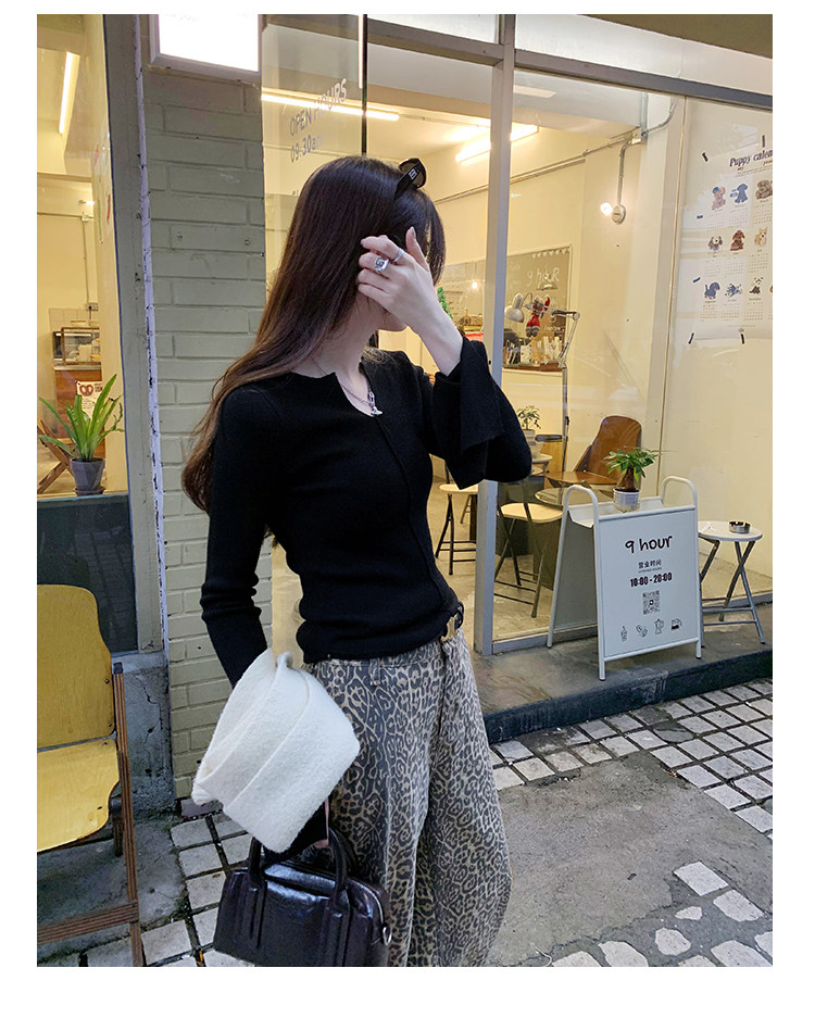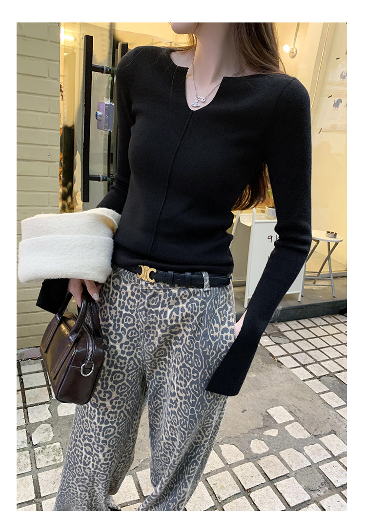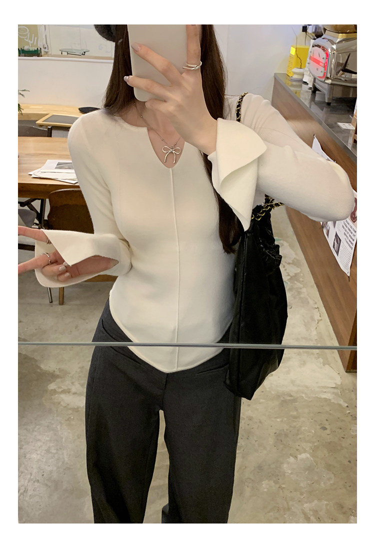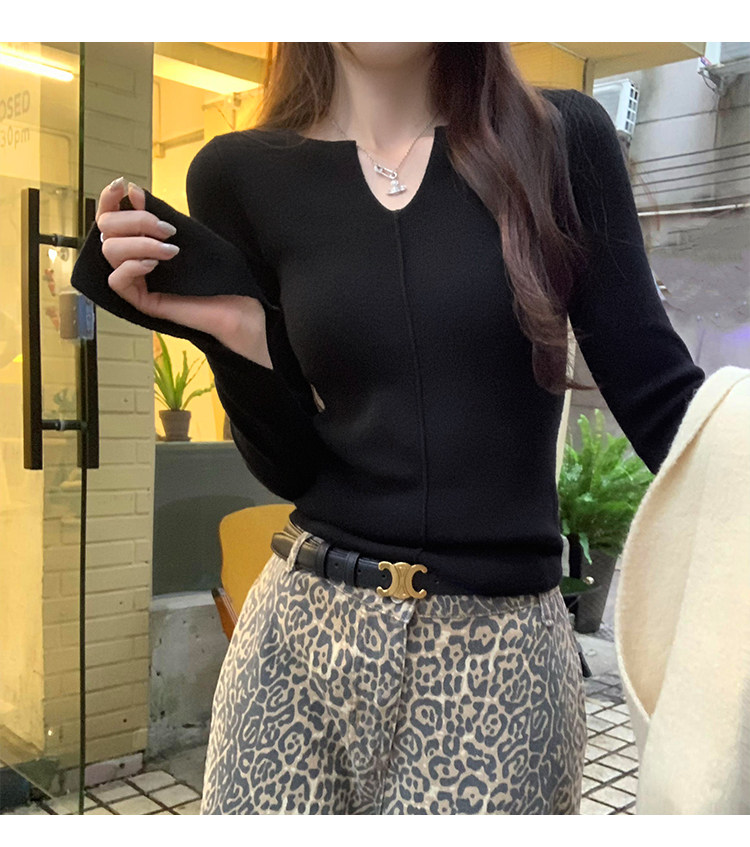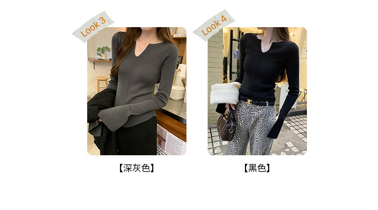 Bell-Sleeve V-Neck Long-Sleeve Knit Top for Women, Autumn and Winter, High-End, Chic, Tight-Fitting, Slimming Base Layer Top