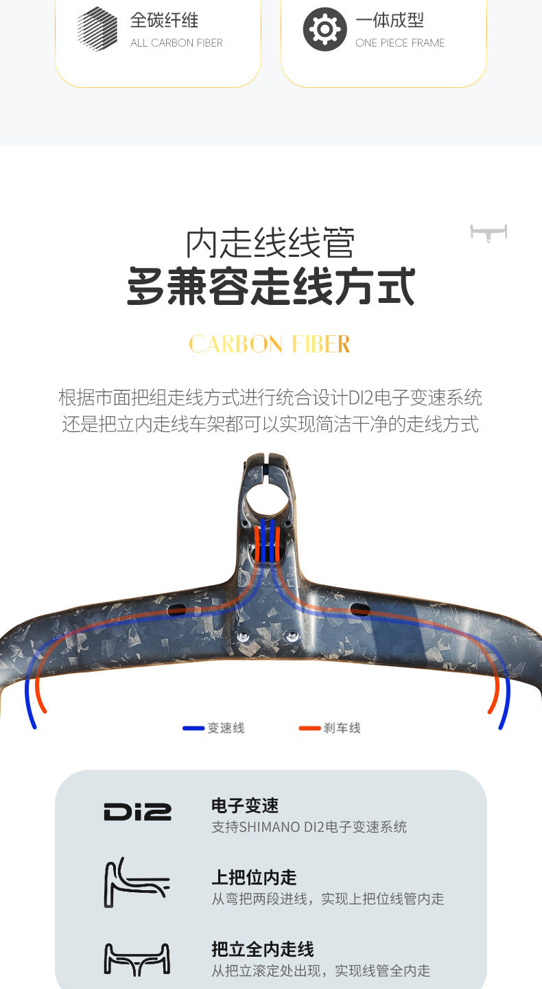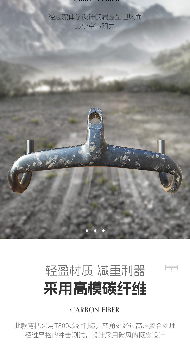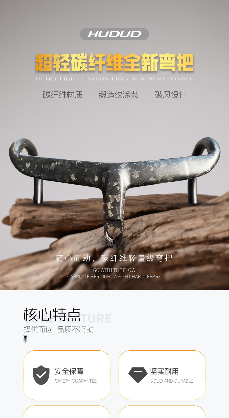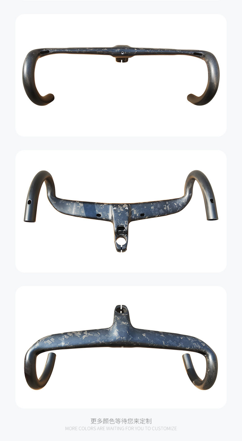 Hudud Curved Road Bike Full Carbon Fiber Integrated Handlebar with Fully Internal Cable Routing, Ultra-Light Forged Pattern Wind-Breaking Handlebar