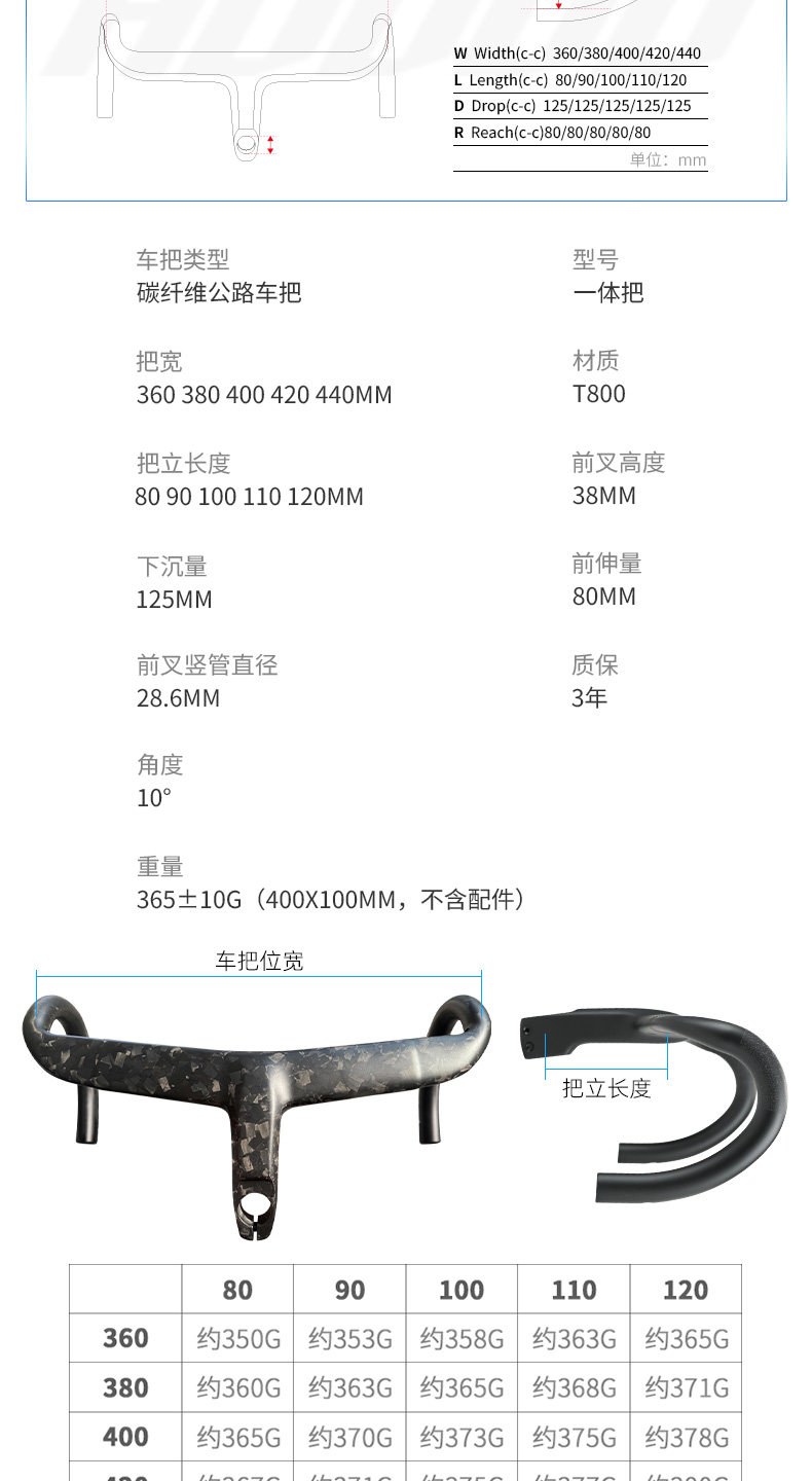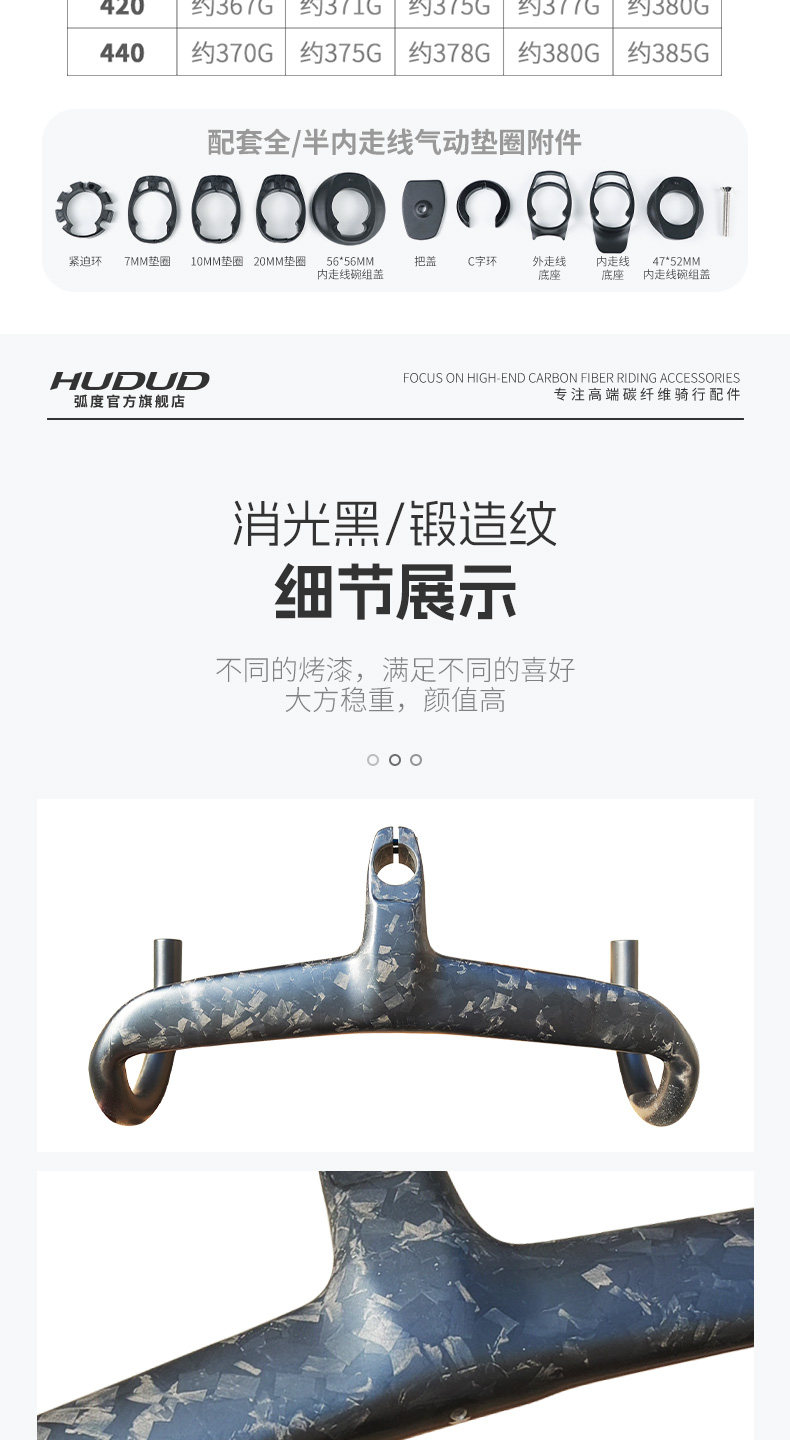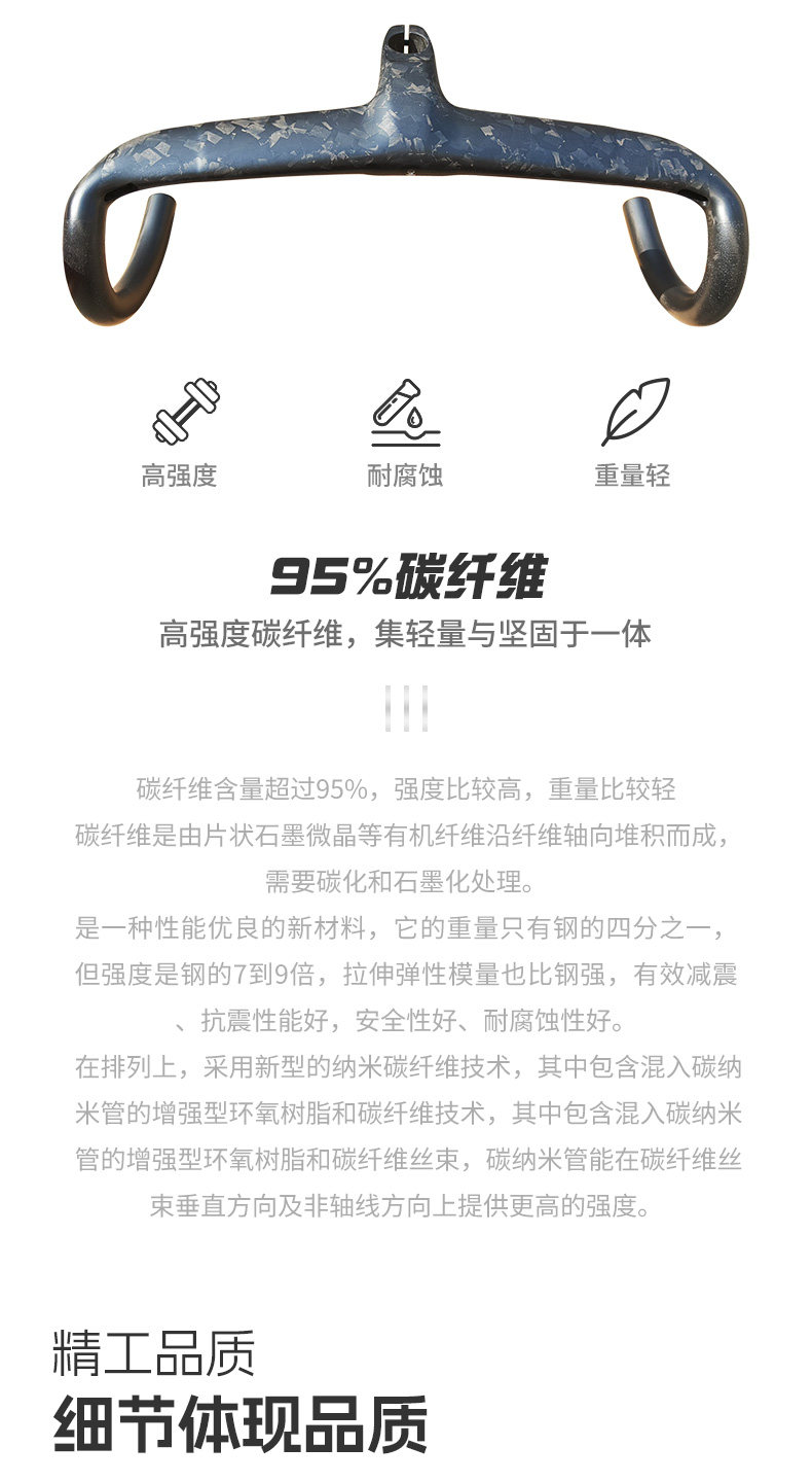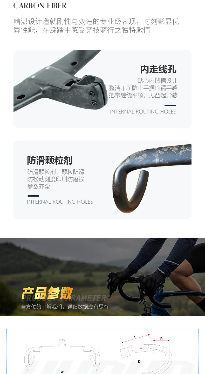 Hudud Curved Road Bike Full Carbon Fiber Integrated Handlebar with Fully Internal Cable Routing, Ultra-Light Forged Pattern Wind-Breaking Handlebar