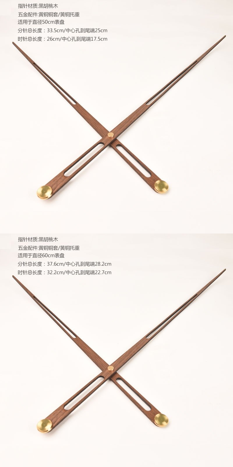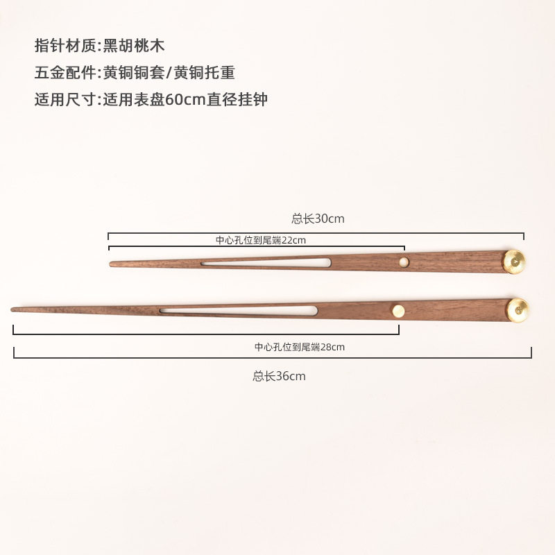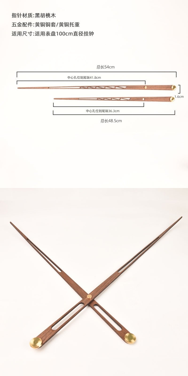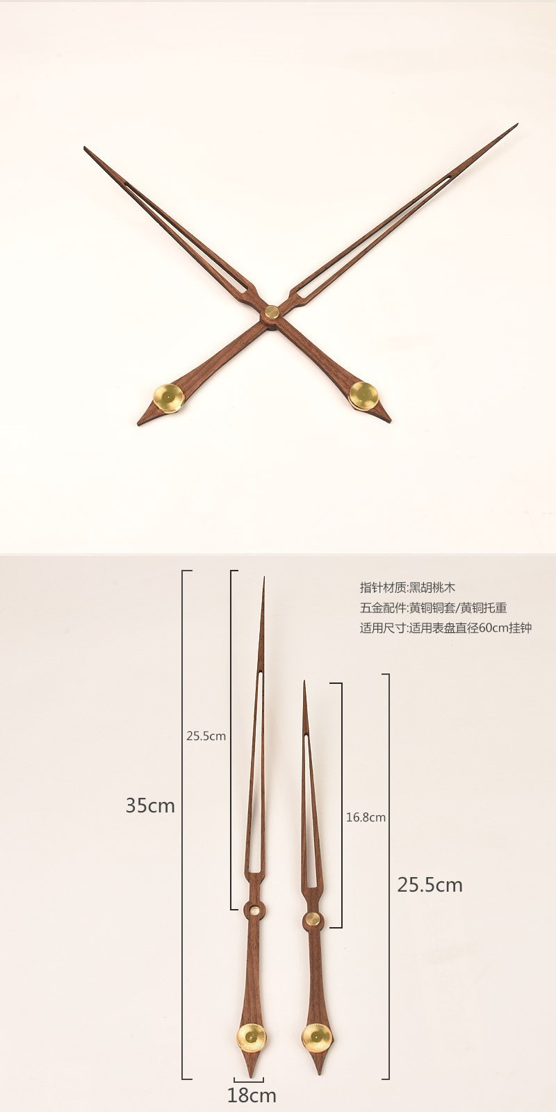 Nordic Simple Modern Large-Sized Wall Clock with Solid Wood Hands, High Torque Quartz Movement, Black Walnut Wood Scale Clock Hands