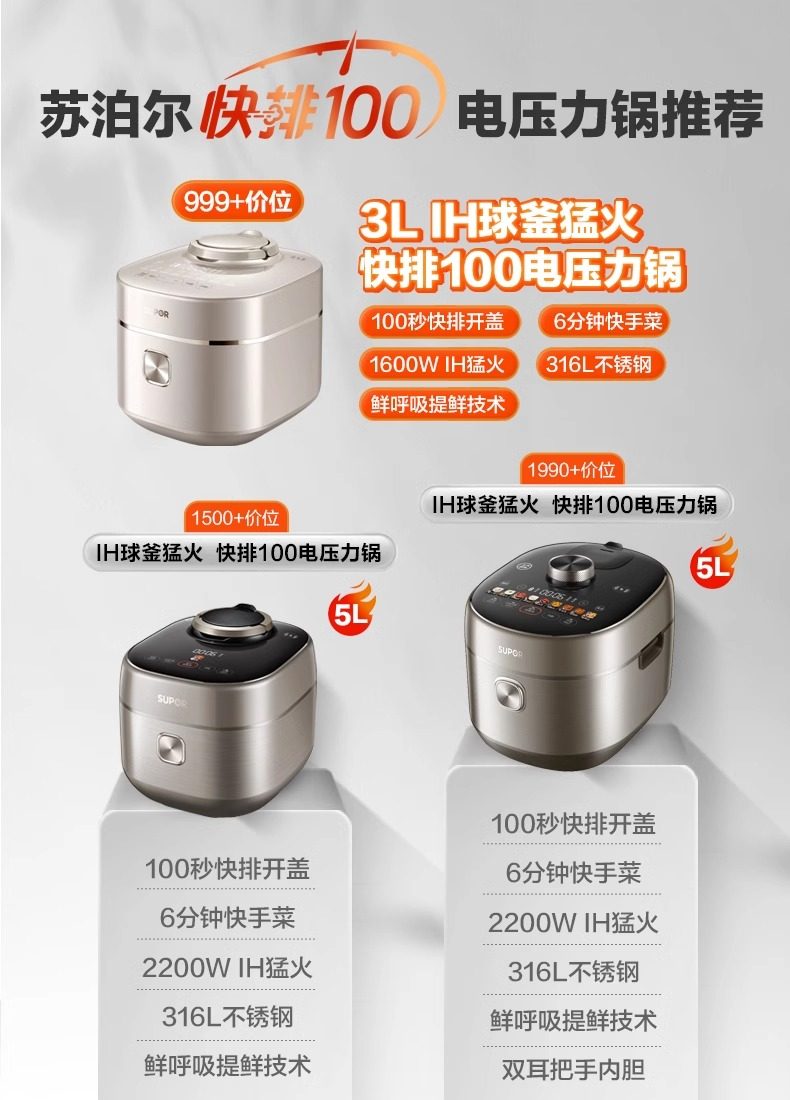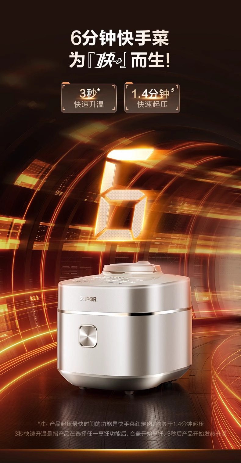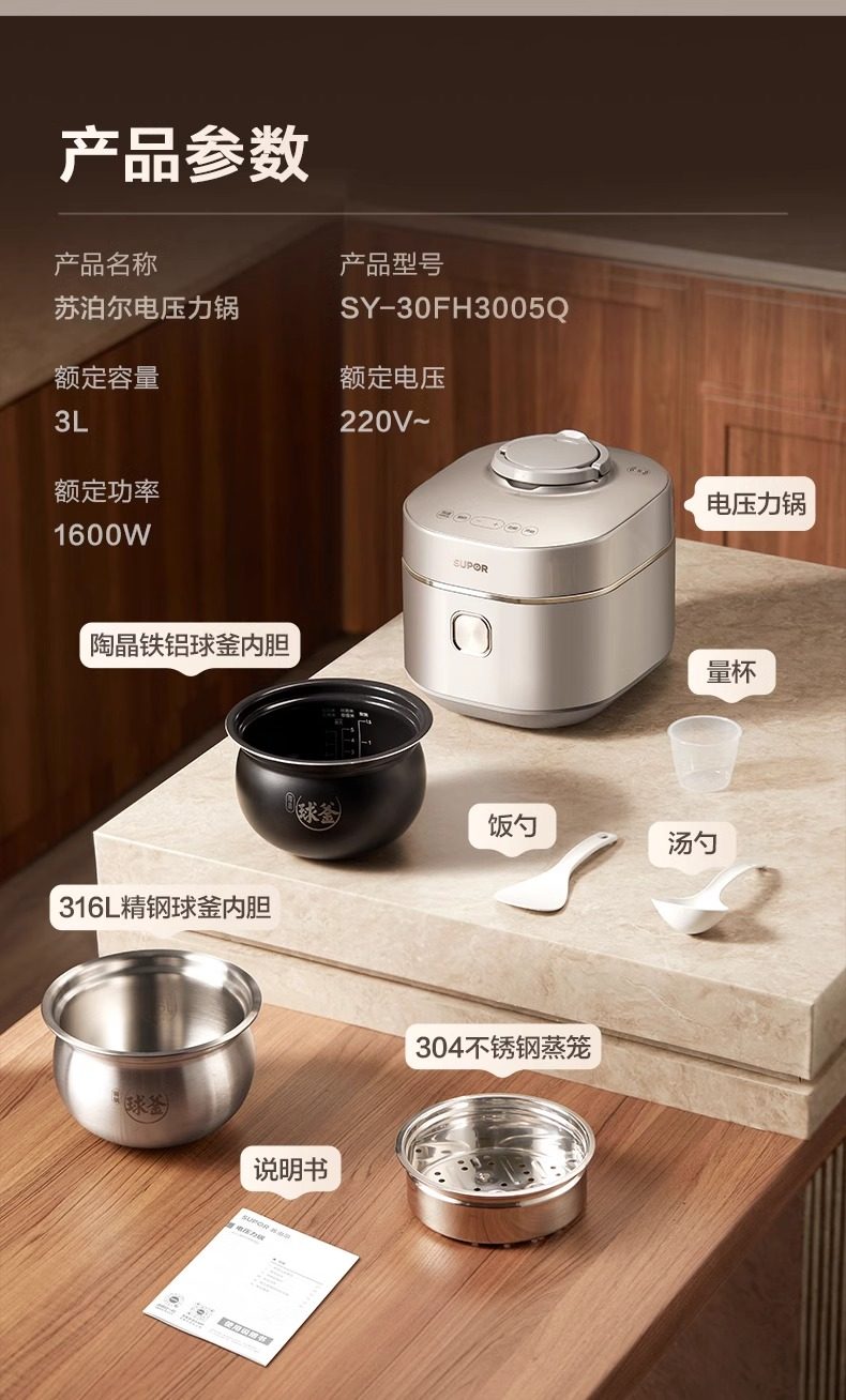 Supor Quick Row 100 Electric Pressure Cooker for Home 3L Multifunctional Smart Rice Cooker Double Ball Knife Large Capacity Pressure Cooker