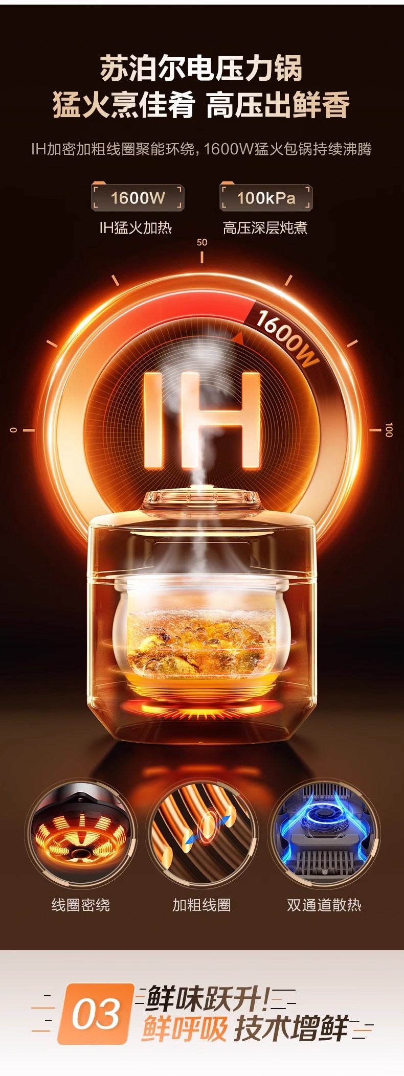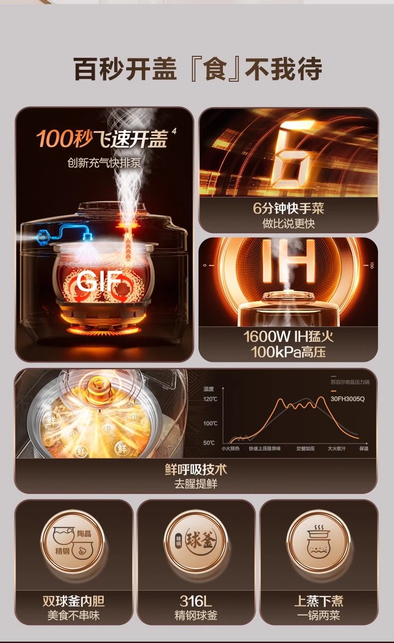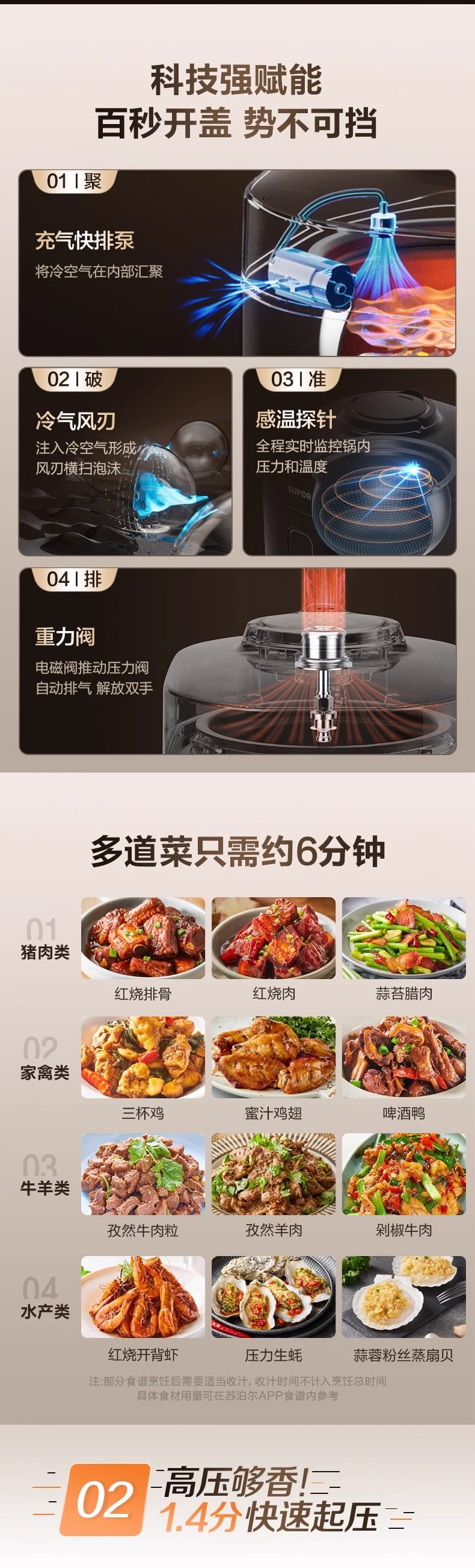 Supor Quick Row 100 Electric Pressure Cooker for Home 3L Multifunctional Smart Rice Cooker Double Ball Knife Large Capacity Pressure Cooker