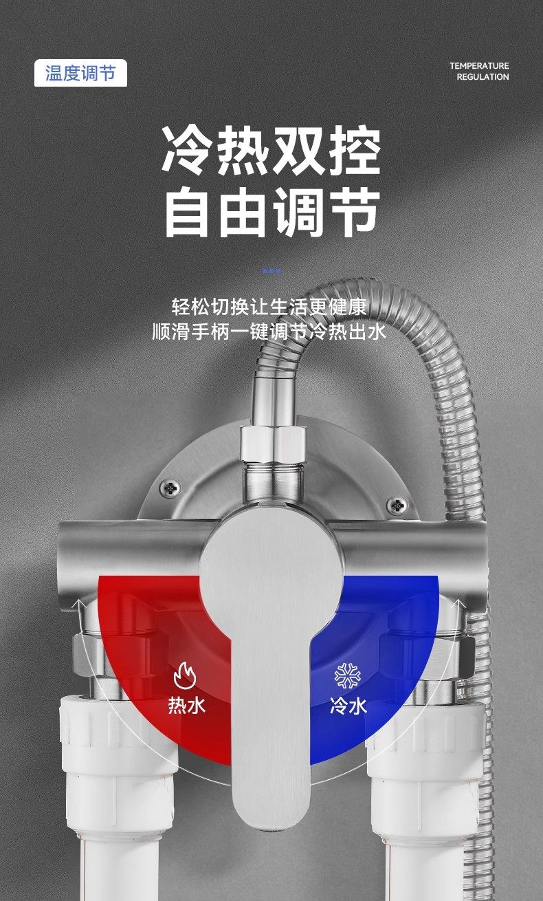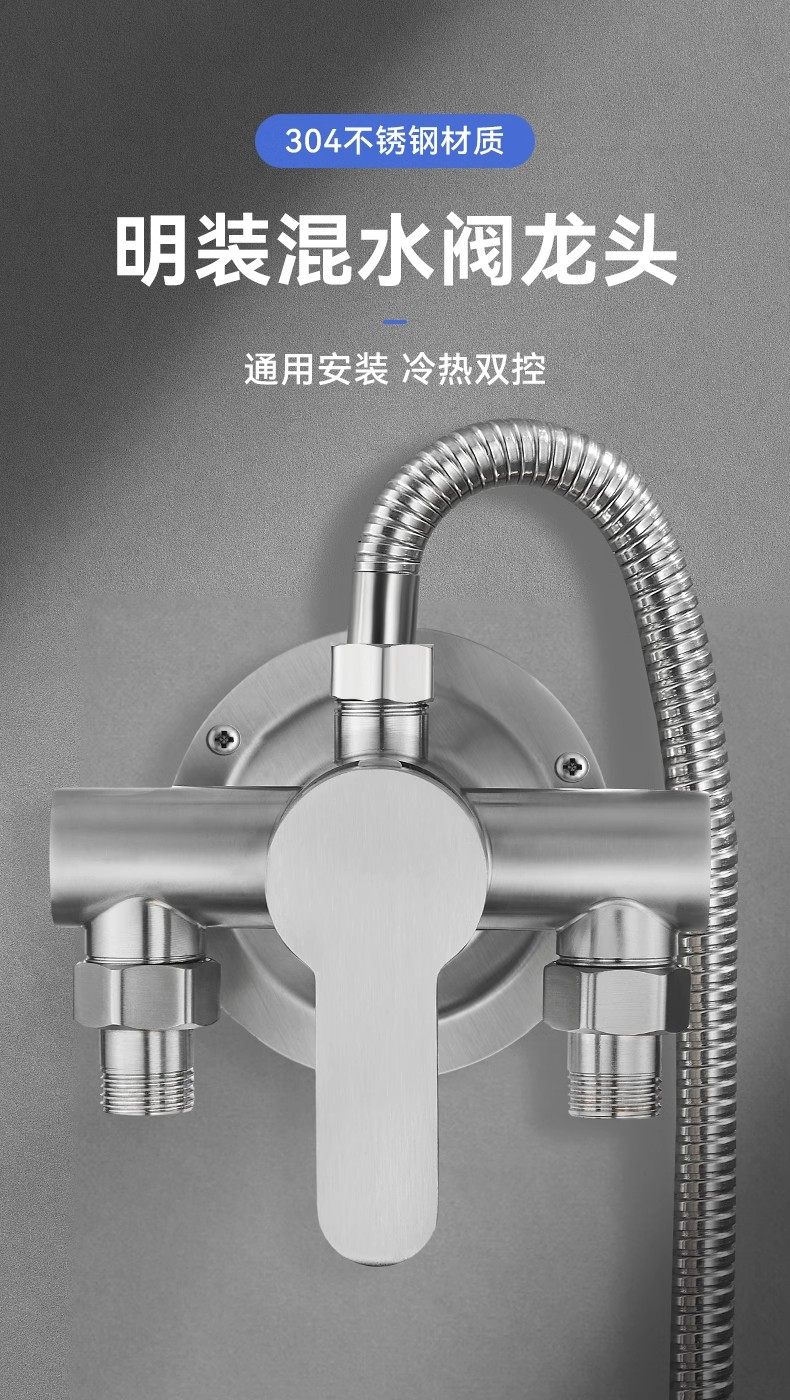 304 Stainless Steel Exposed Hot and Cold Mixing Valve Bathroom Water Heater Shower Faucet Shower Solar Switch Valve