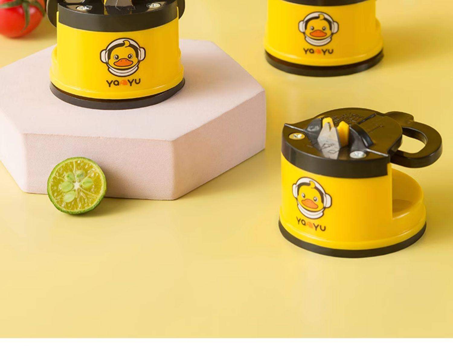 Kitchen Knife Sharpener Multifunctional Little Yellow Duck Mini Suction Cup Kitchen Knife Sharpening Tool Double-Sided Sharpening Stone Sharpening Gadget