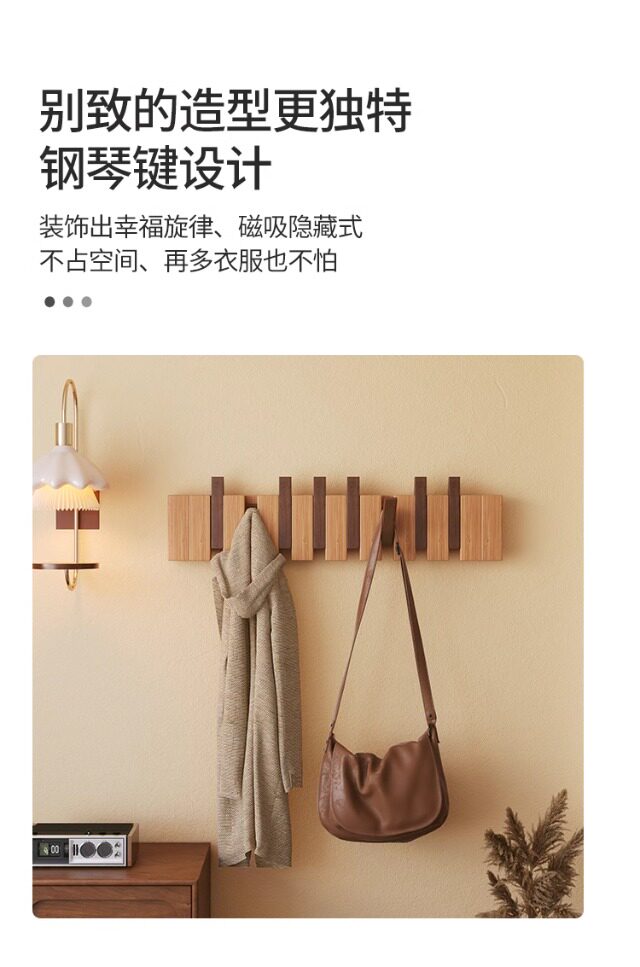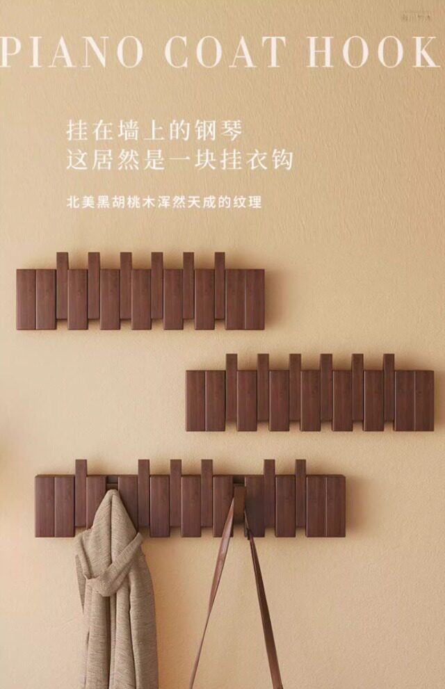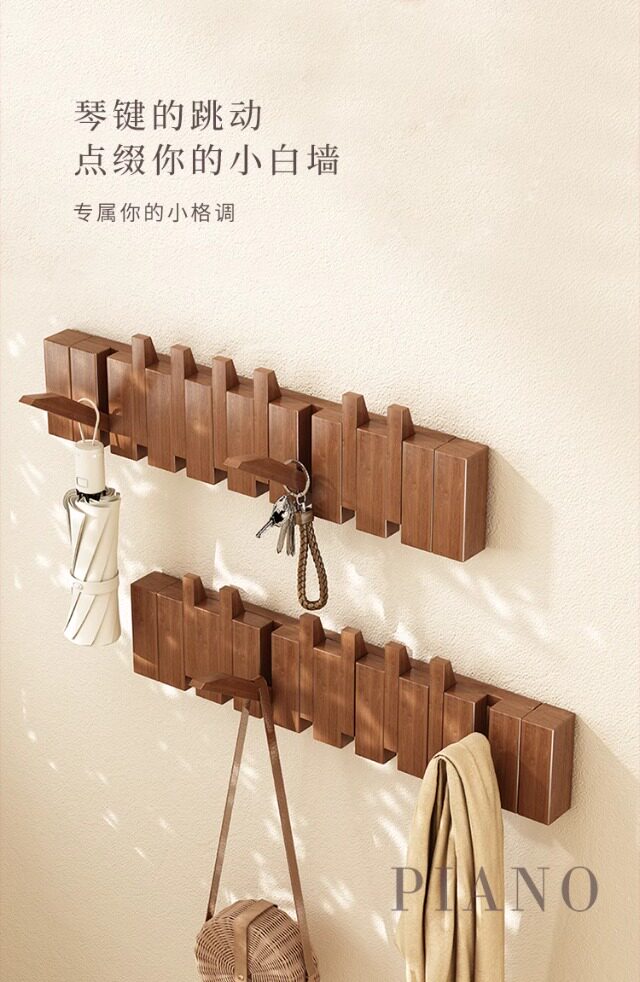 Piano Key-Shaped Wooden Coat Rack, Wall-Mounted Hook for Entryway, Wall Hook for Hanging Clothes Behind the Door
