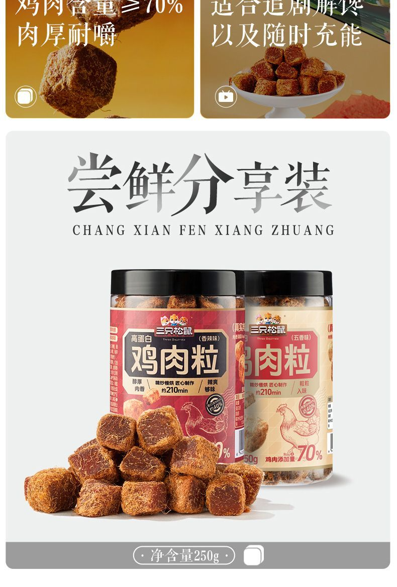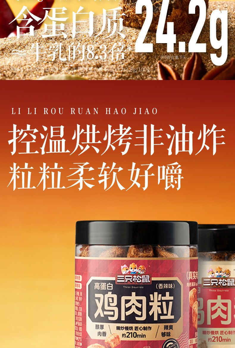 Three Squirrels Spicy Chicken Nuggets 250g High-Protein Chicken Jerky Snack Meat Food for Binge-Watching