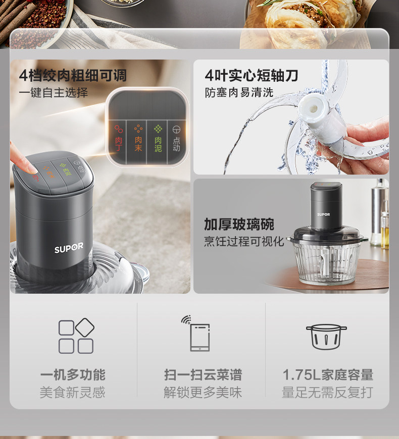 Supor Automatic Household Electric Meat Grinder Small Multifunctional Blender Adjustable Coarseness New Model Genuine Product