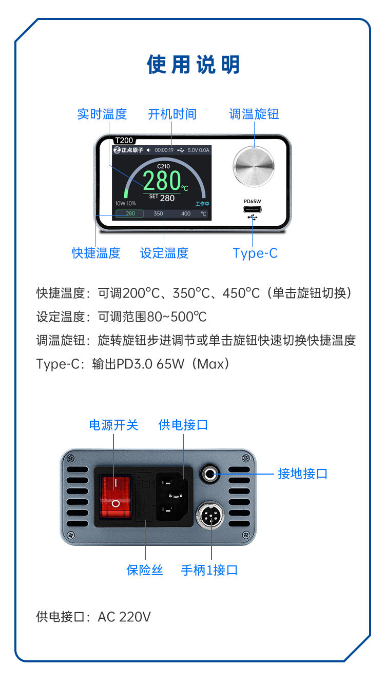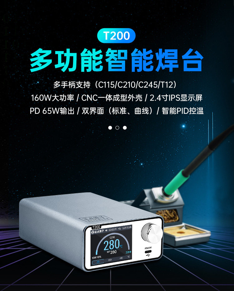 Zhengdian Atomic T200 Intelligent Soldering Station Electric Soldering Iron Constant Temperature Digital Display 160W Repair T12 C245 C210 C115