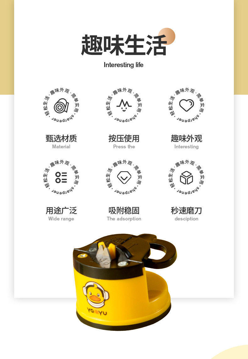 Little Yellow Duck Mini Suction Cup Knife Sharpener Home Quick Sharpening Tool Portable Sharpening Stone Knife Sharpening Gadget