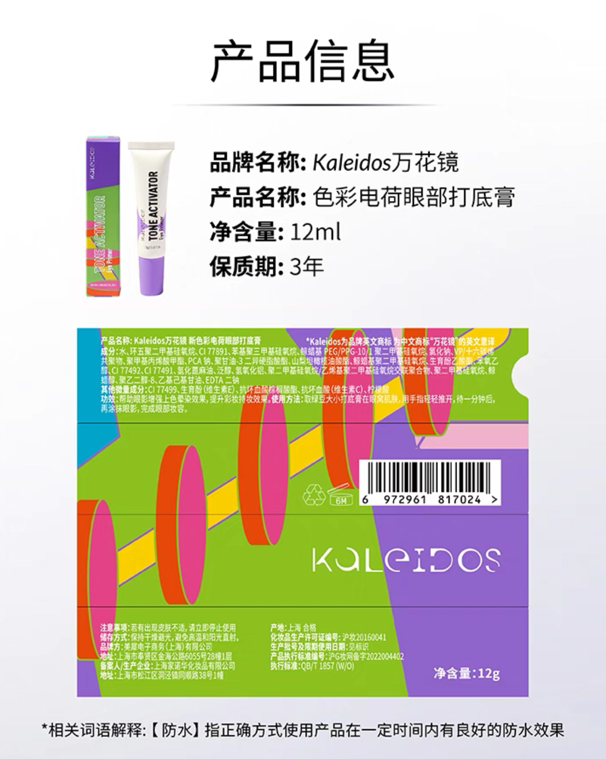 Kaleidos Kaleidoscope Eye Primer Is Waterproof before Makeup, Does Not Remove Makeup, Maintains Color, Conceals and Isolates