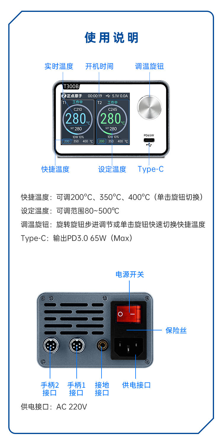 Zhengdian Atomic T300 Intelligent Soldering Station Electric Soldering Iron Constant Temperature Digital Display 160W Repair T12 C245 C210 C115