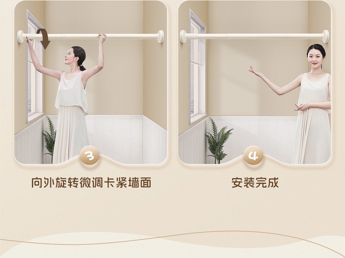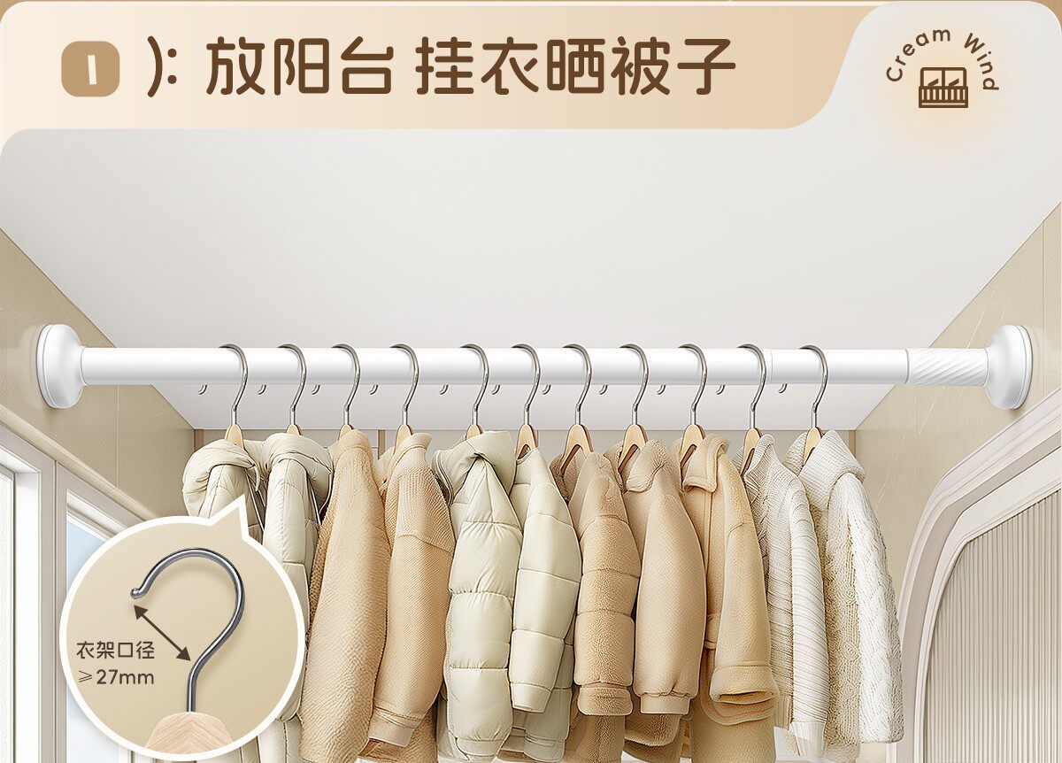 German Seiko Punch-Free Telescopic Rod Clothes Drying Rod Clothes Hanger Stainless Steel Curtain Hanging Rod Shower Curtain Rod Door Curtain Support Rod