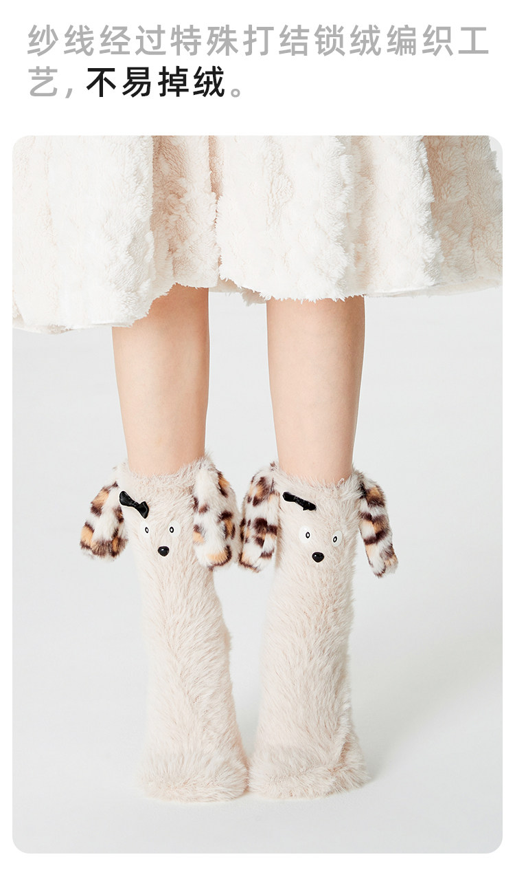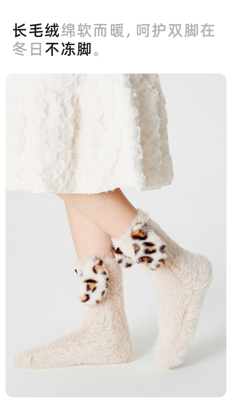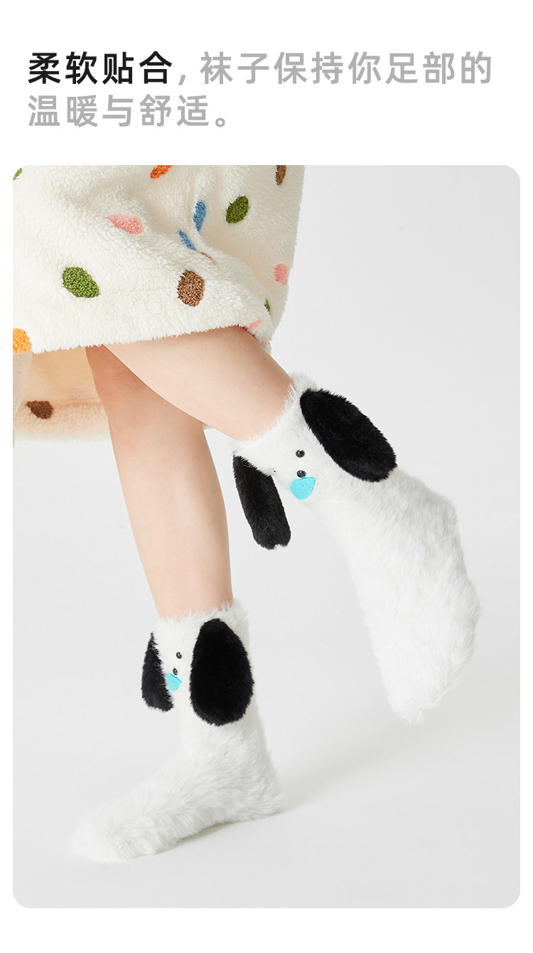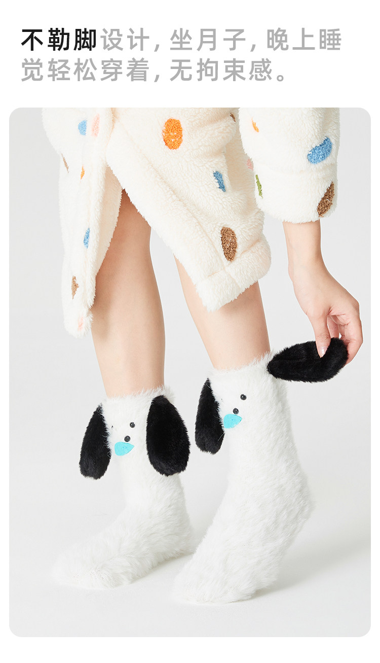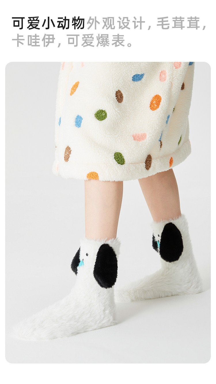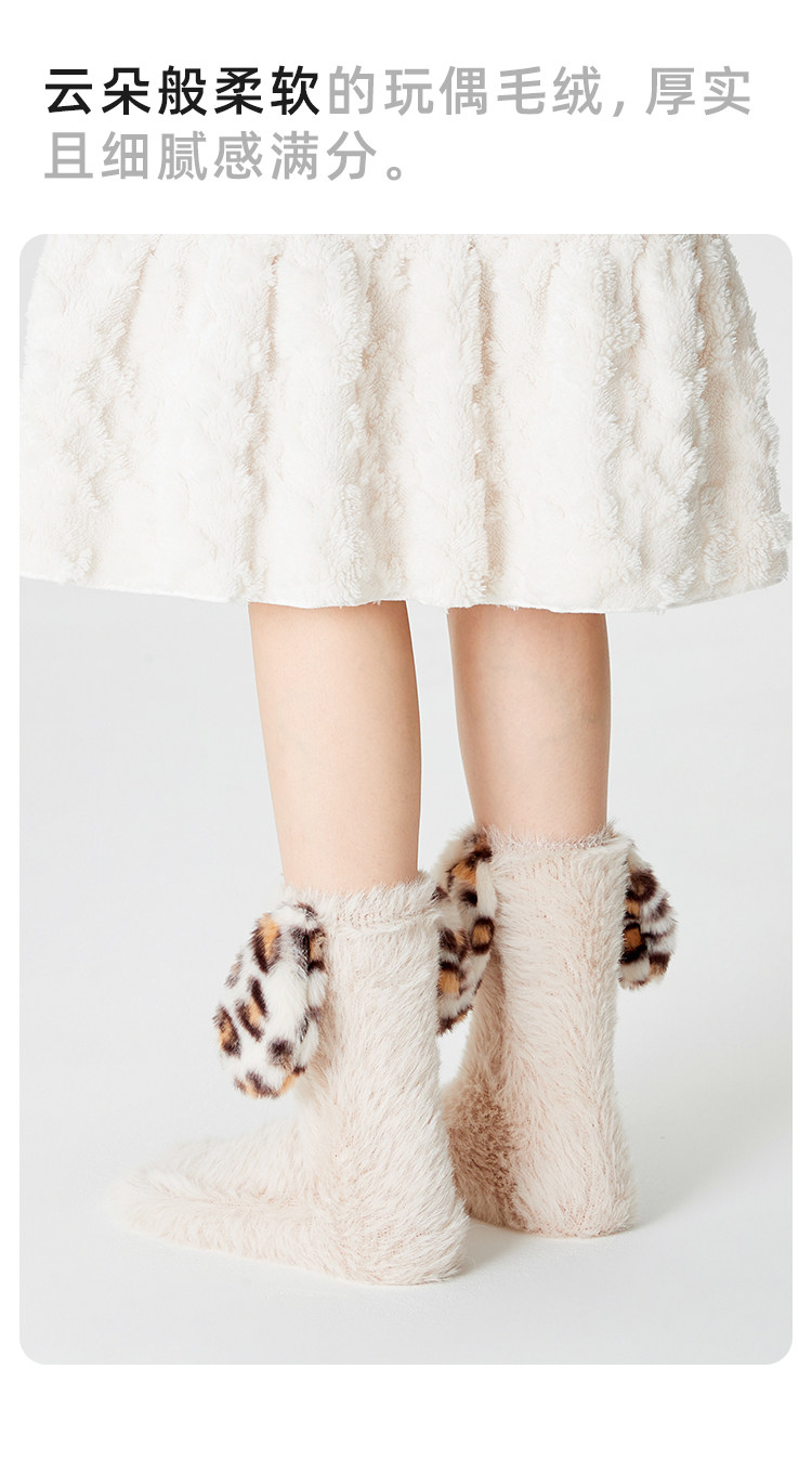 Thickened Warm Plush Floor Socks, Autumn and Winter Sleep Socks, Mid-Calf Socks with 3D Ears, Cute Home Socks for Girls