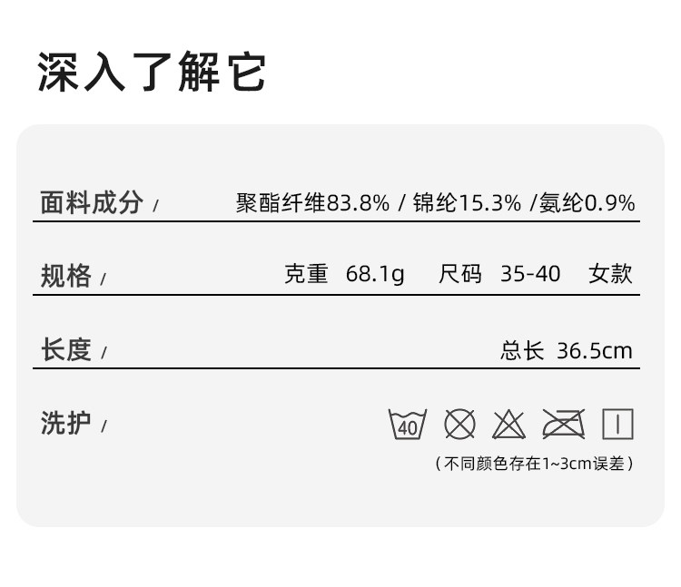 Fabric Material Composition Polyester Fiber 83.8% Polyamide Fiber (Nylon) 15.3% Polyurethane Elastic Fiber (Spandex) 0.9%