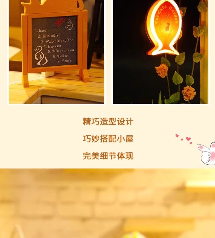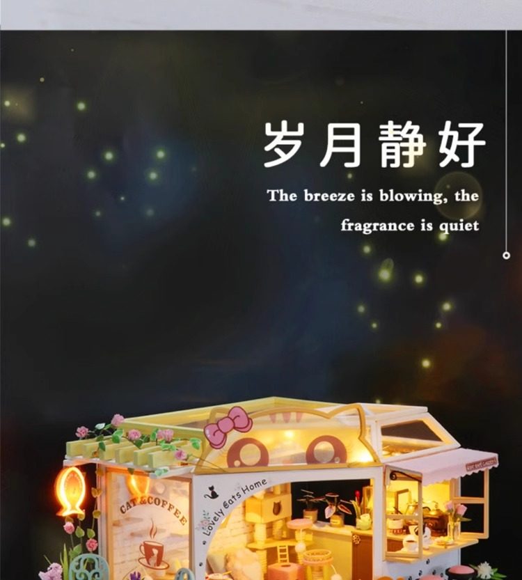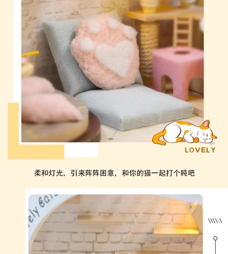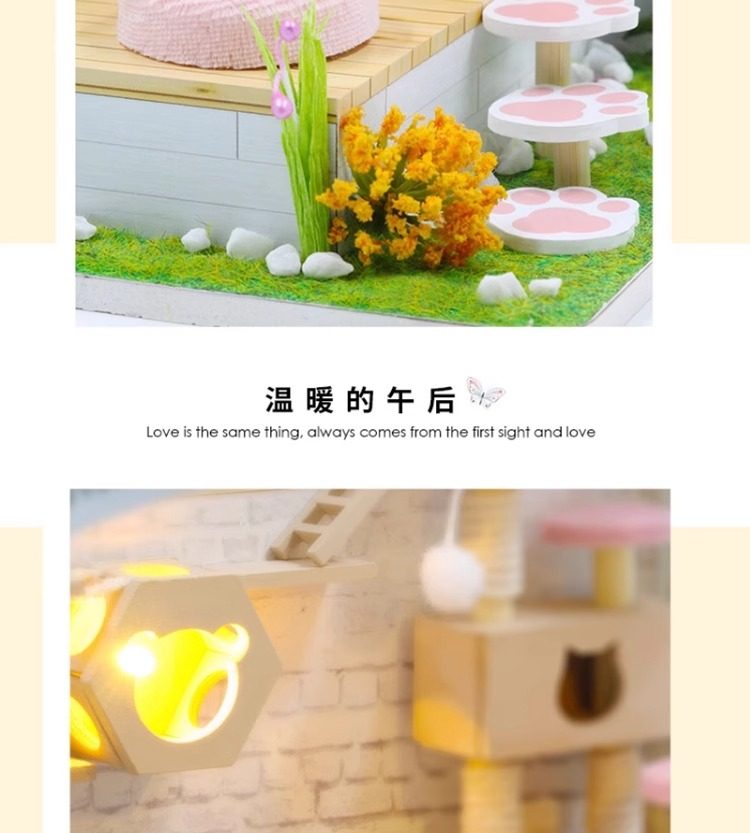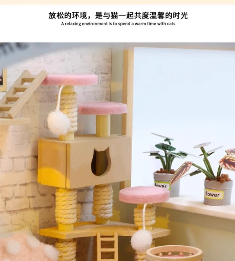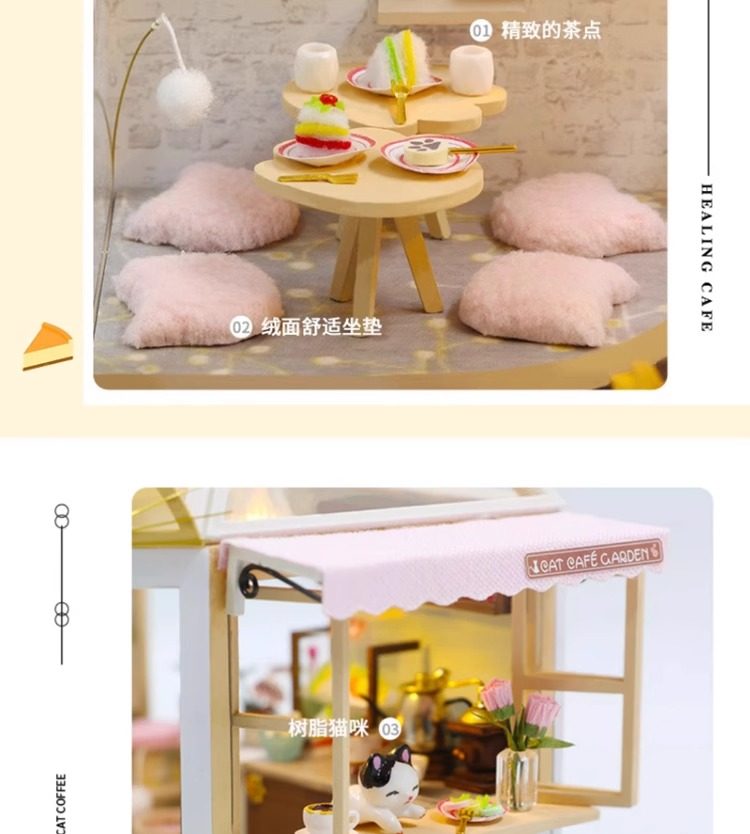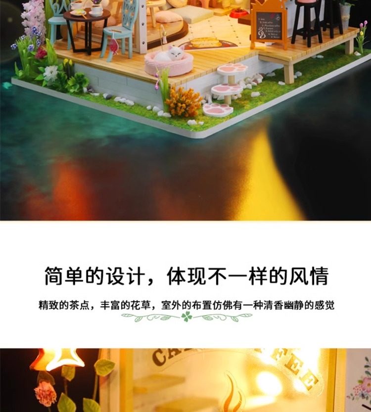 DIY Wooden Assembly Toy Miniature House Model for the Backyard of a Cat Cafe, a Birthday Gift for Girls