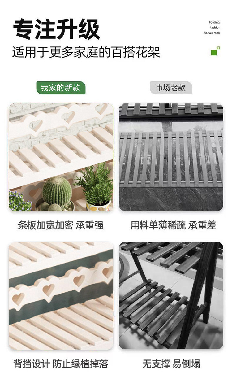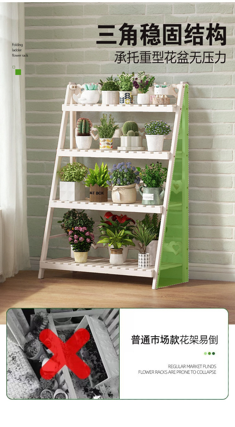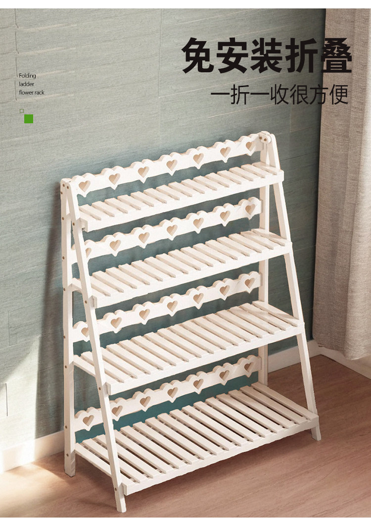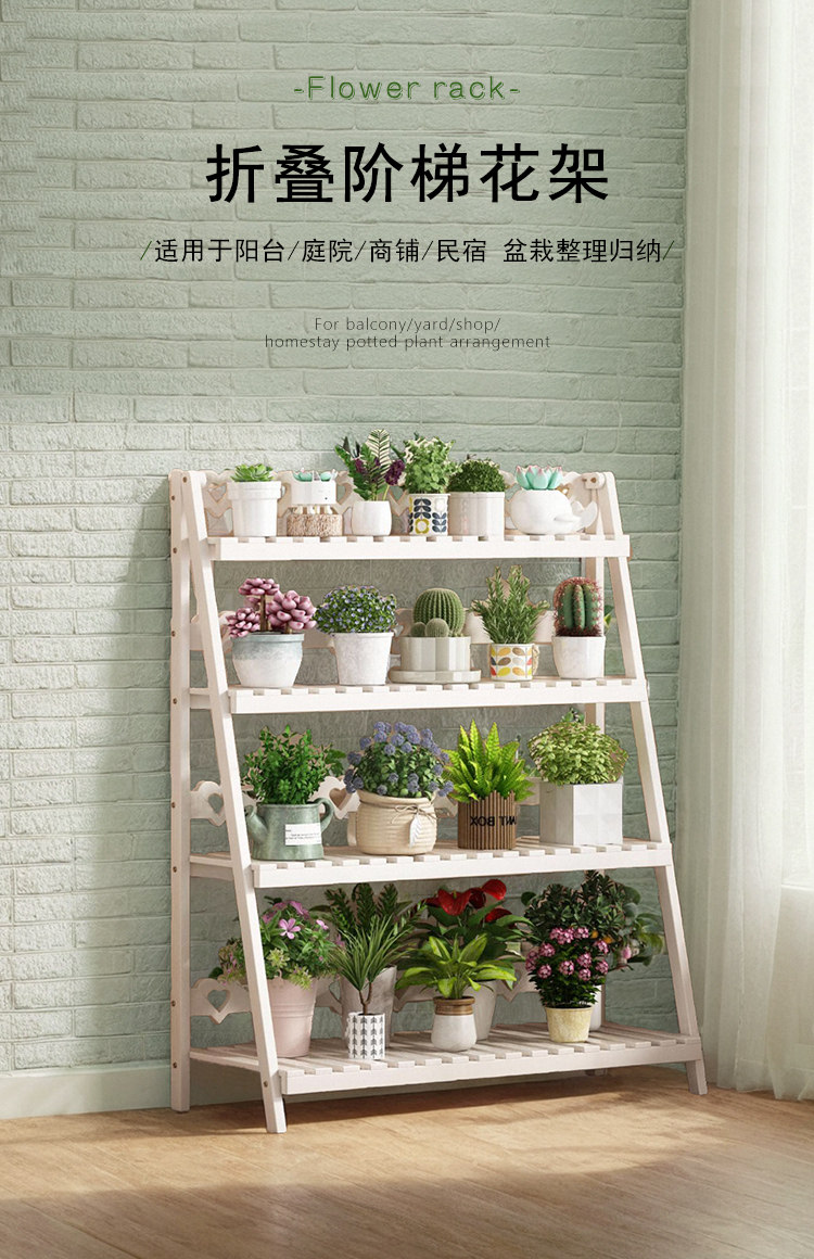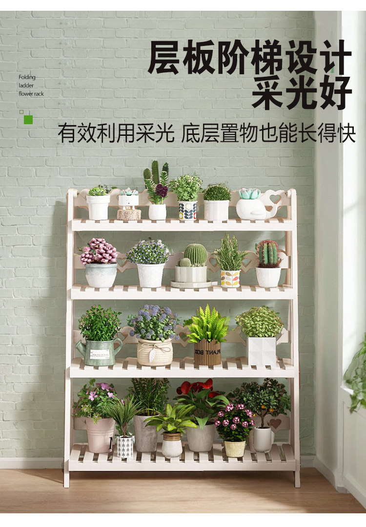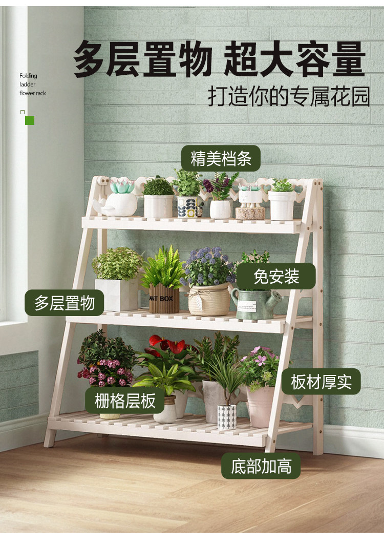 Solid Wood Flower Stand, No Installation Required, Integrated Flower Pot Stand, Foldable Multi-Layer Indoor Living Room Home Floor-Standing Storage Rack