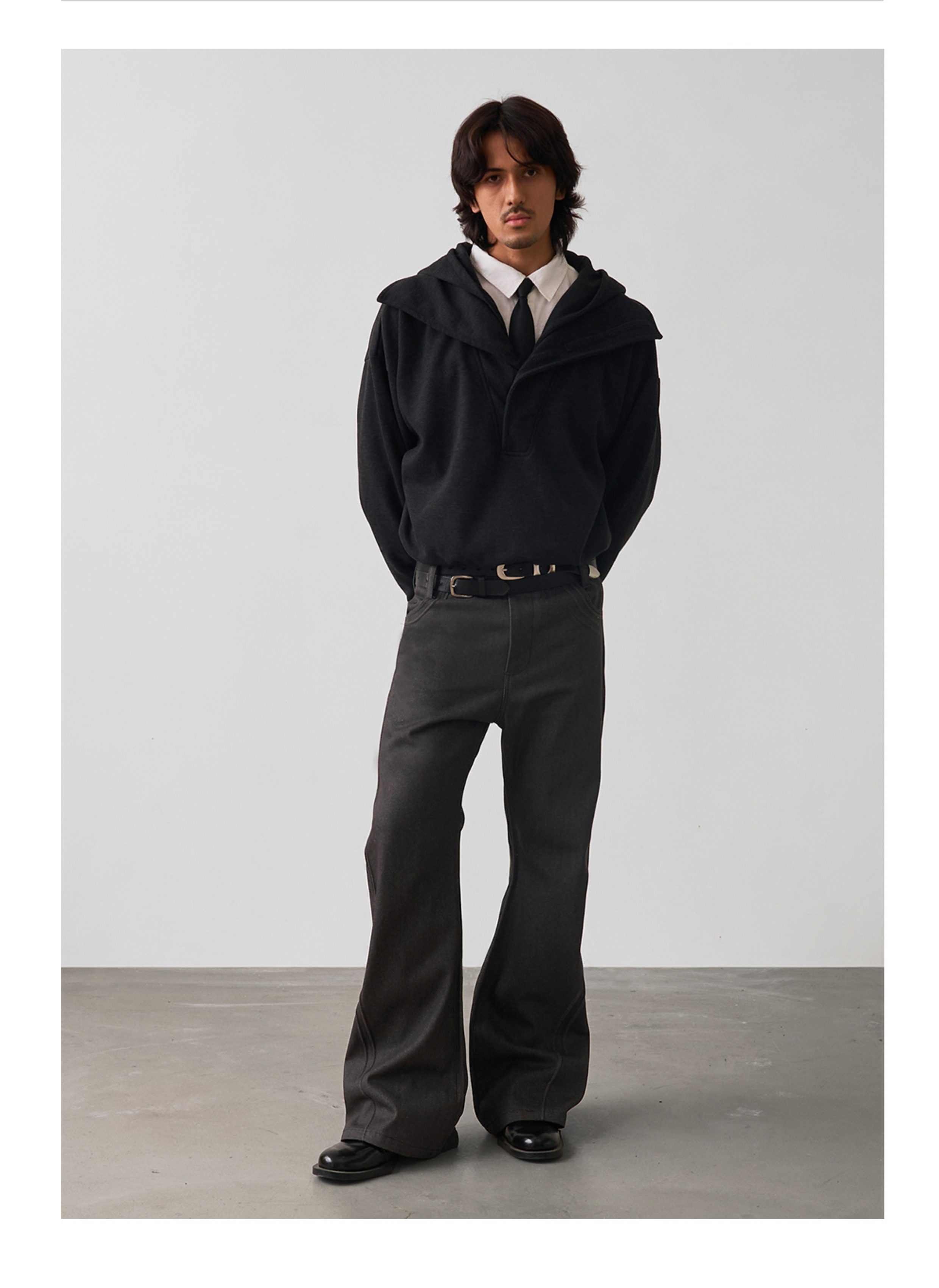 Slight Vogue "Flowing" Three-Dimensional Quilted Gray Eucalyptus Pulp 13oz Straight-Leg Denim Pants
