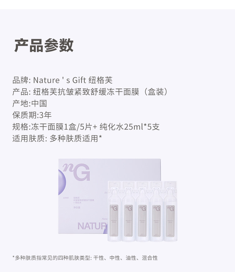Nature's Gift Anti-Wrinkle Firming Soothing Freeze-Dried Mask (Boxed) Moisturizing and Improving Redness
