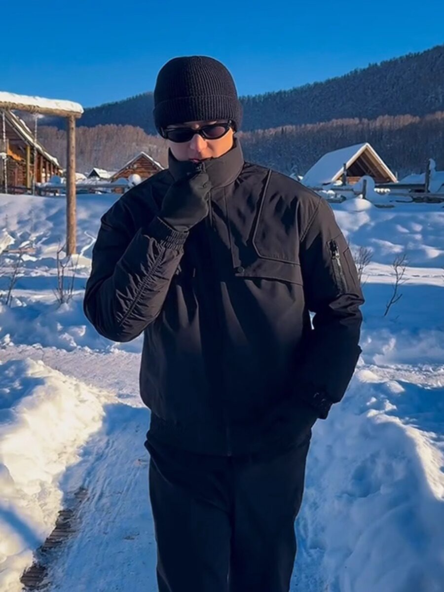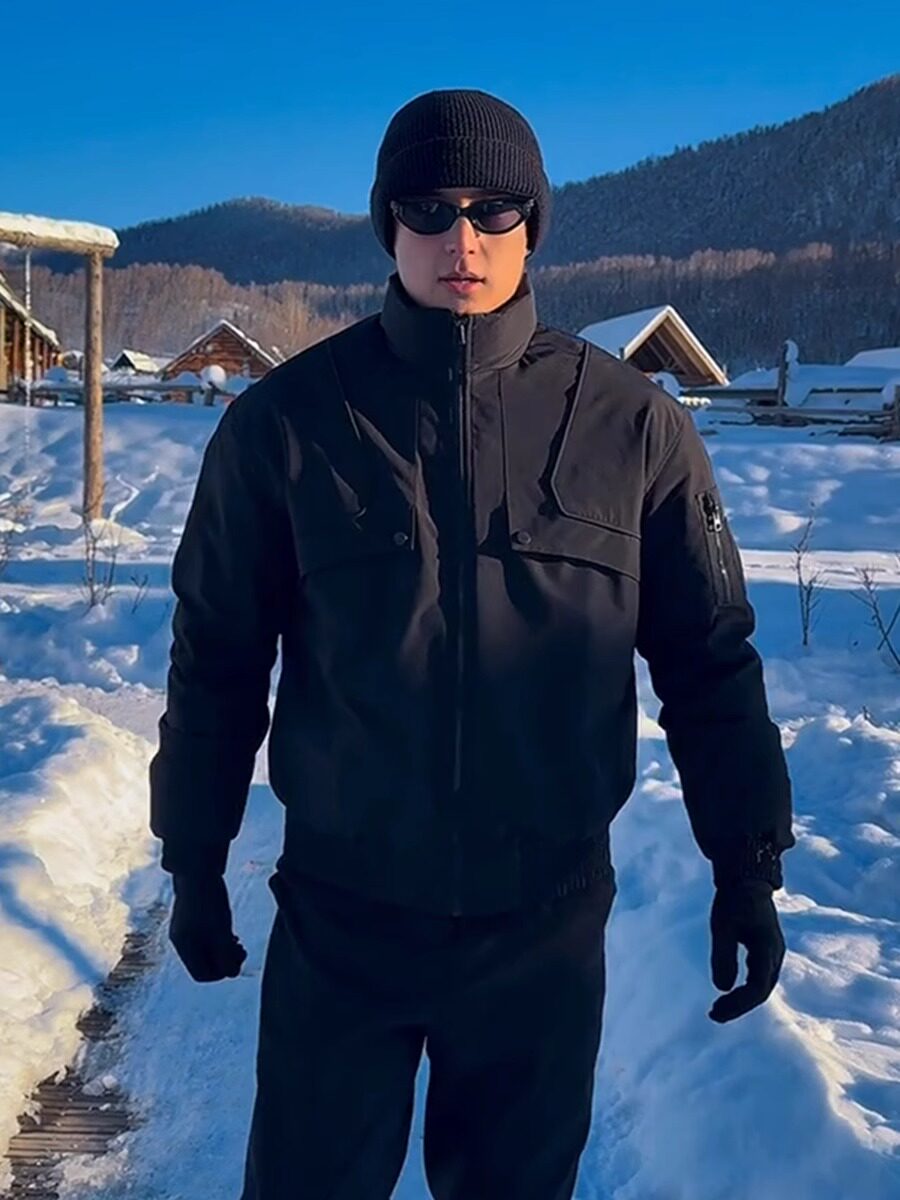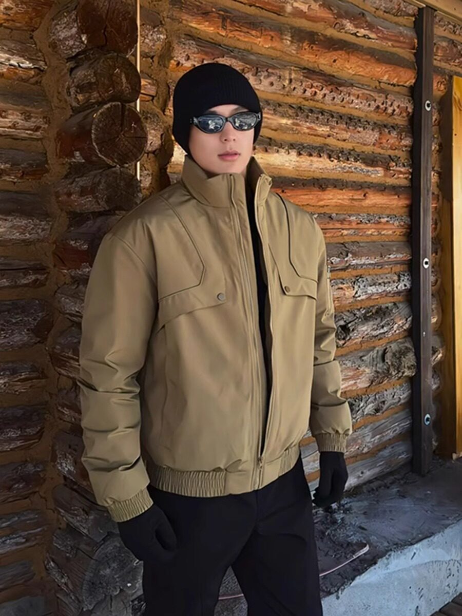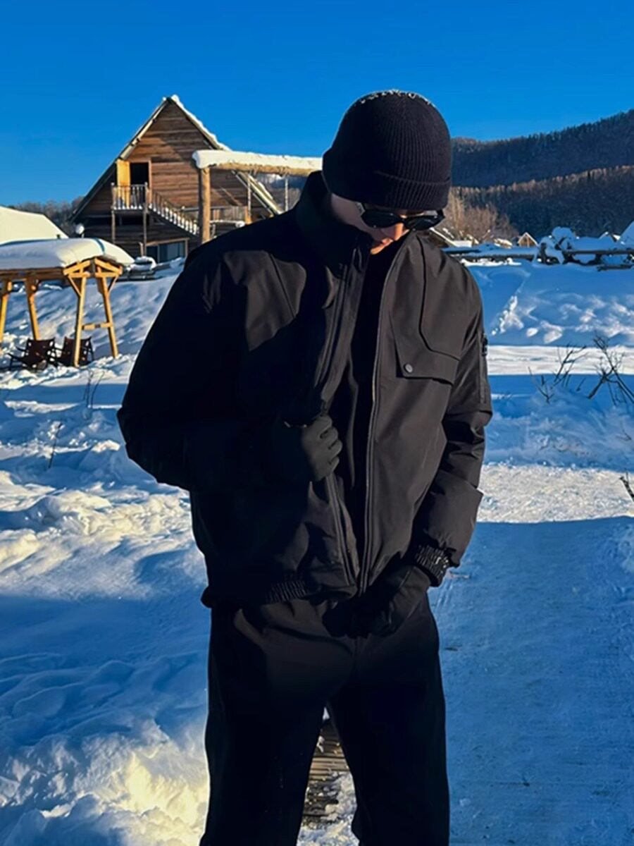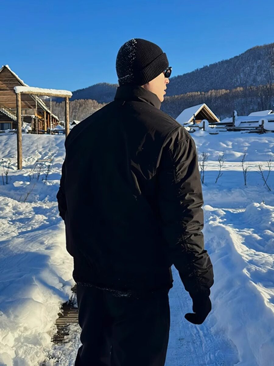 Black Silhouette Short Stand-Up Collar Cotton Jacket Men's Coat 2026 New Autumn and Winter American Tough Guy Style Jacket Men's Style