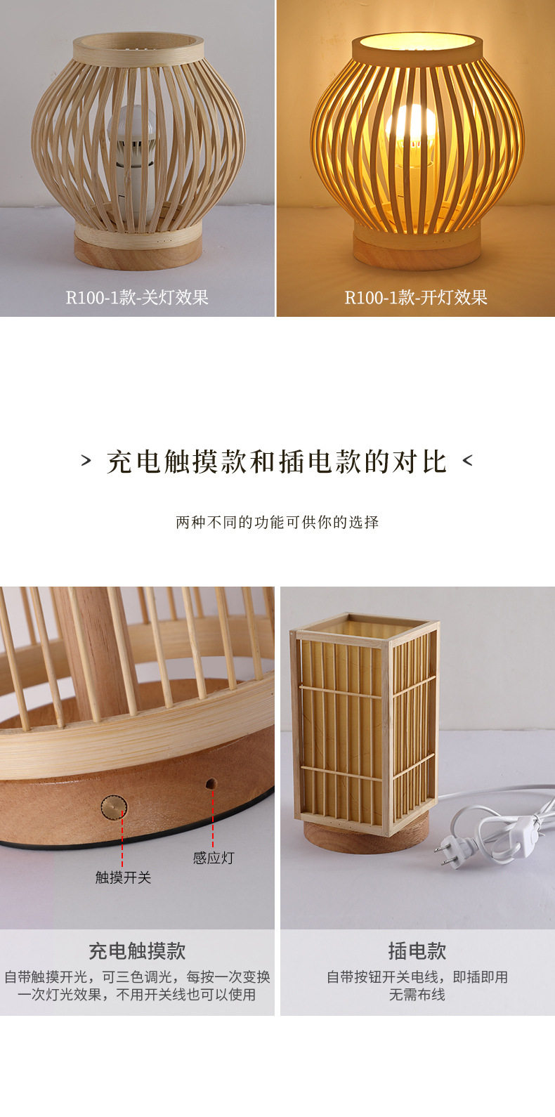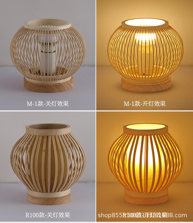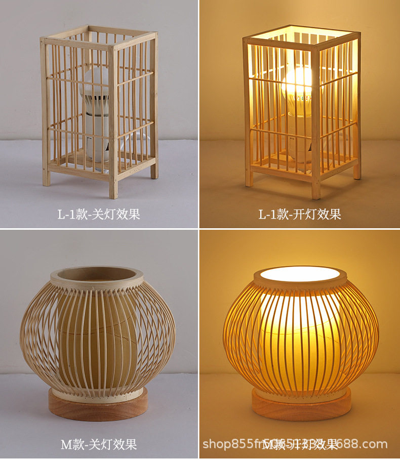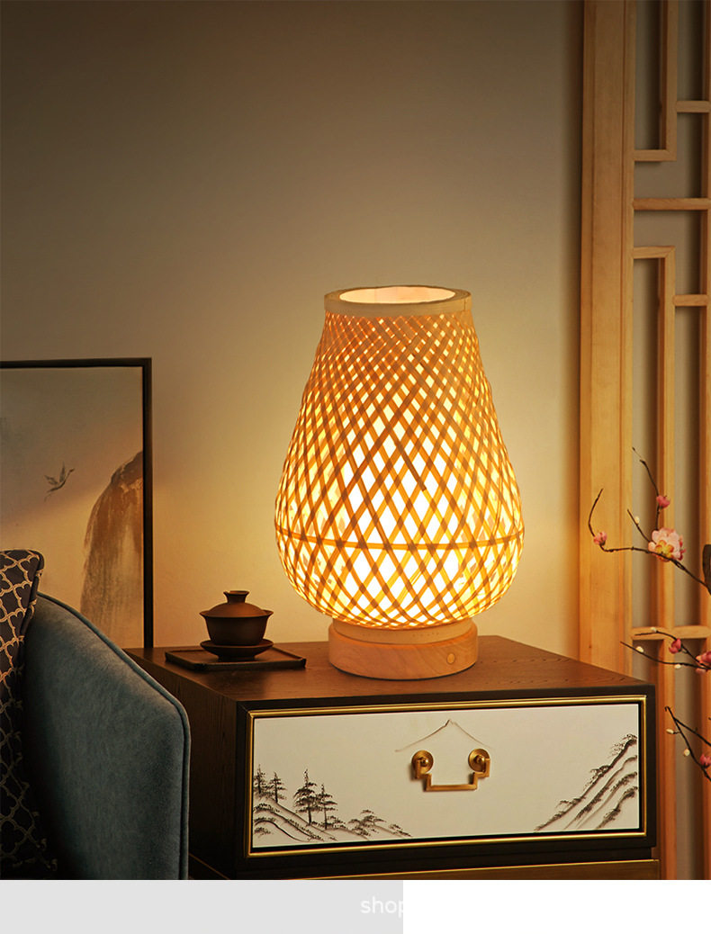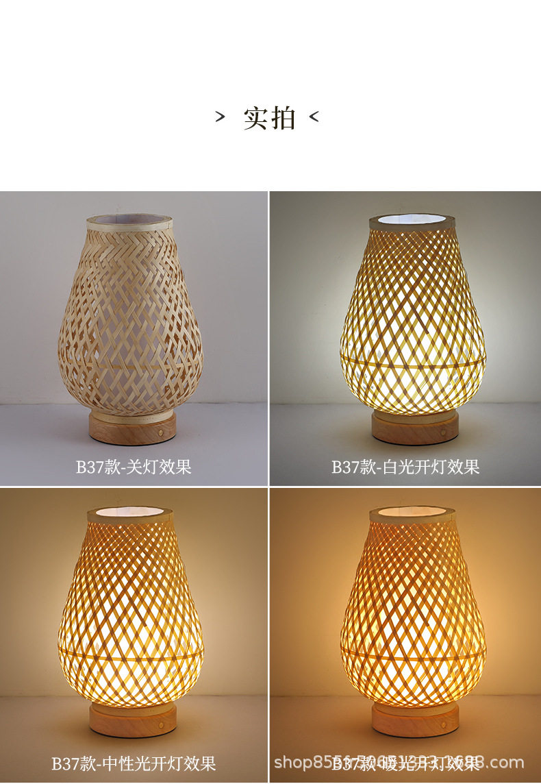 Japanese-Style Atmosphere Table Lamp, Rechargeable Retro Homestay Bedroom Bedside Lamp, Tea Room Antique-Style Decoration, Bamboo Woven Floor Lamp