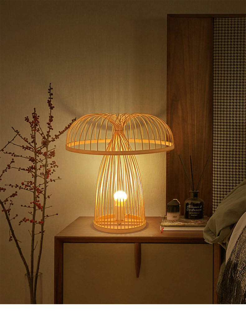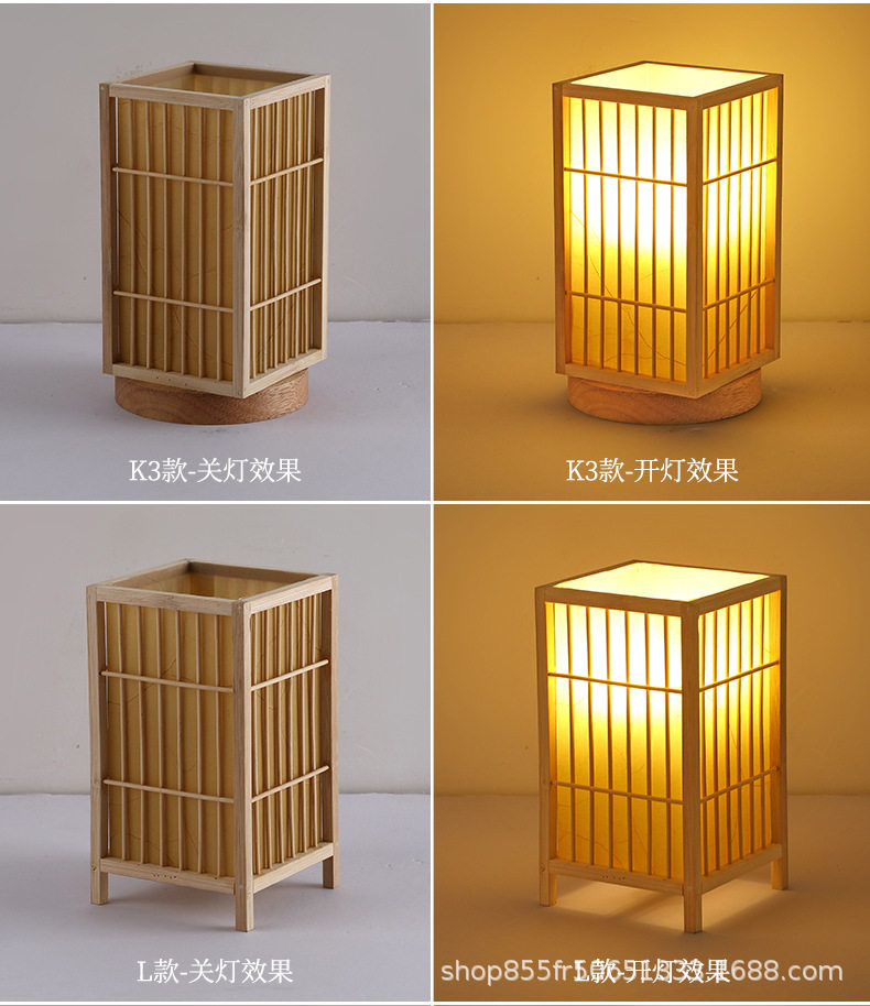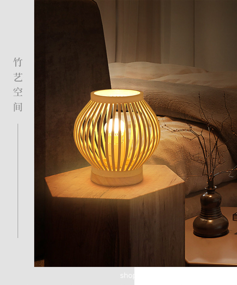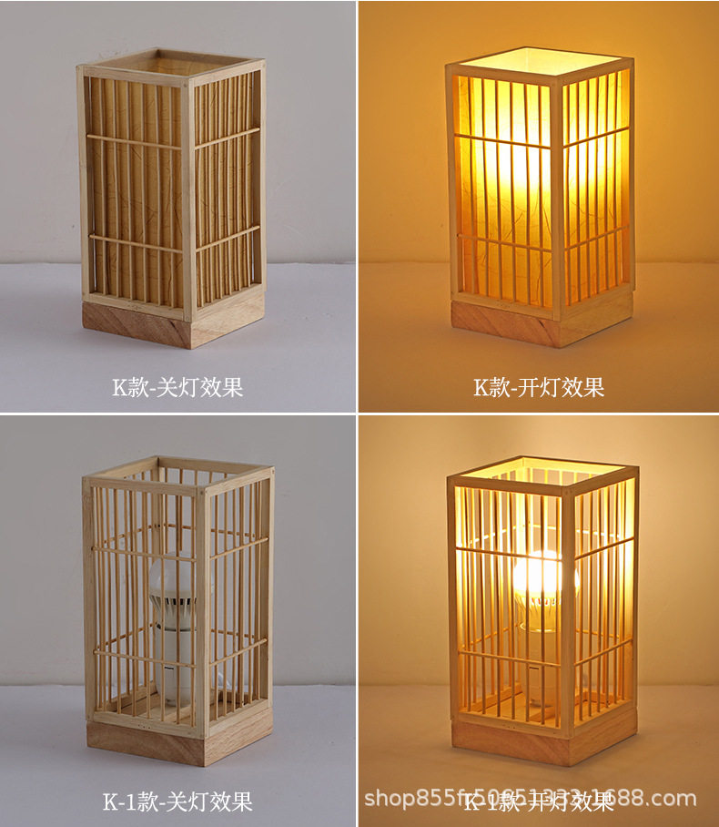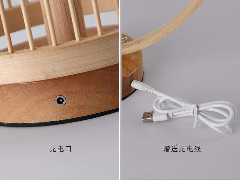 Japanese-Style Atmosphere Table Lamp, Rechargeable Retro Homestay Bedroom Bedside Lamp, Tea Room Antique-Style Decoration, Bamboo Woven Floor Lamp