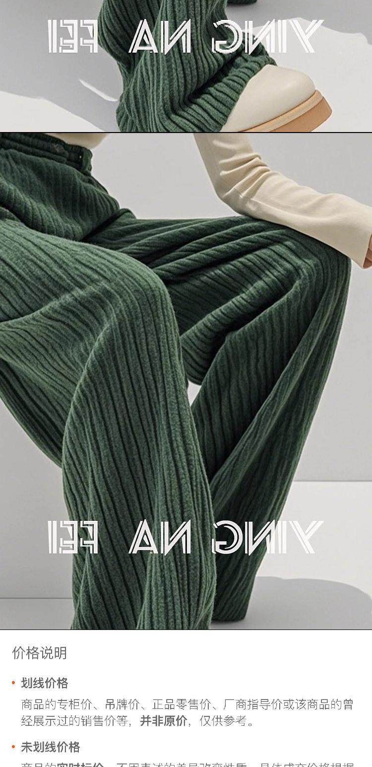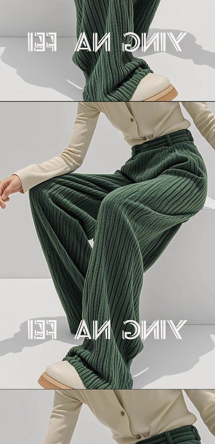 Hyky New Winter Style Retro High-End Drapey Slimming High-Waisted Pants Green Casual Corduroy Wide-Leg Pants