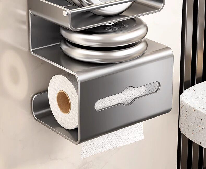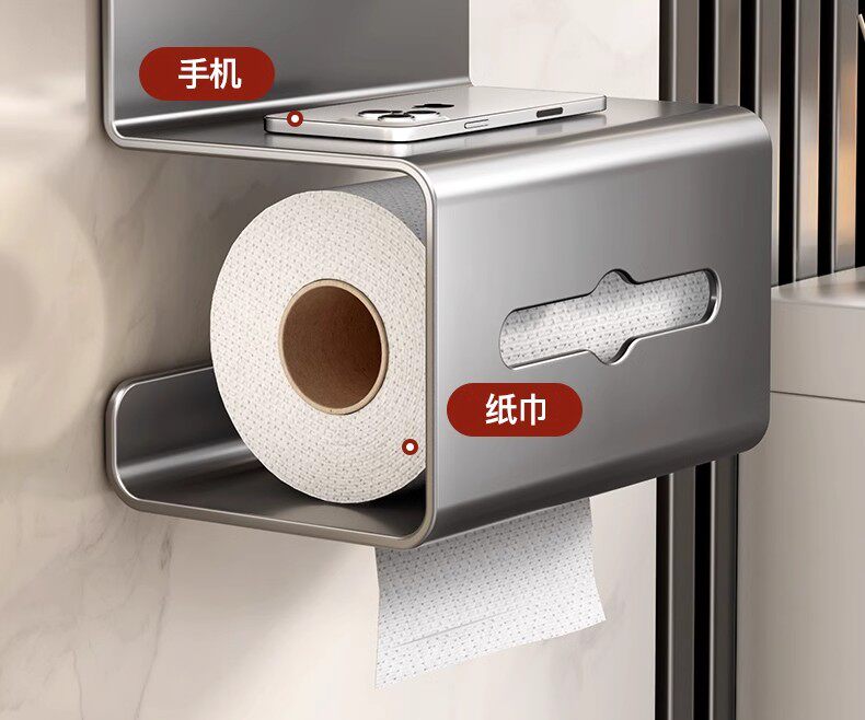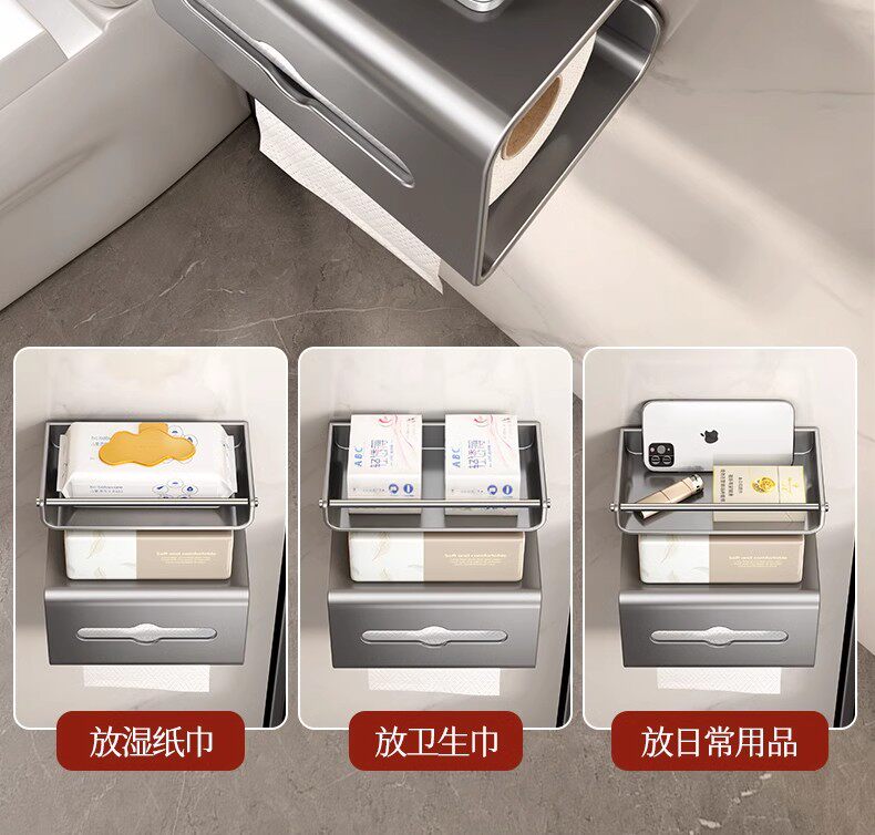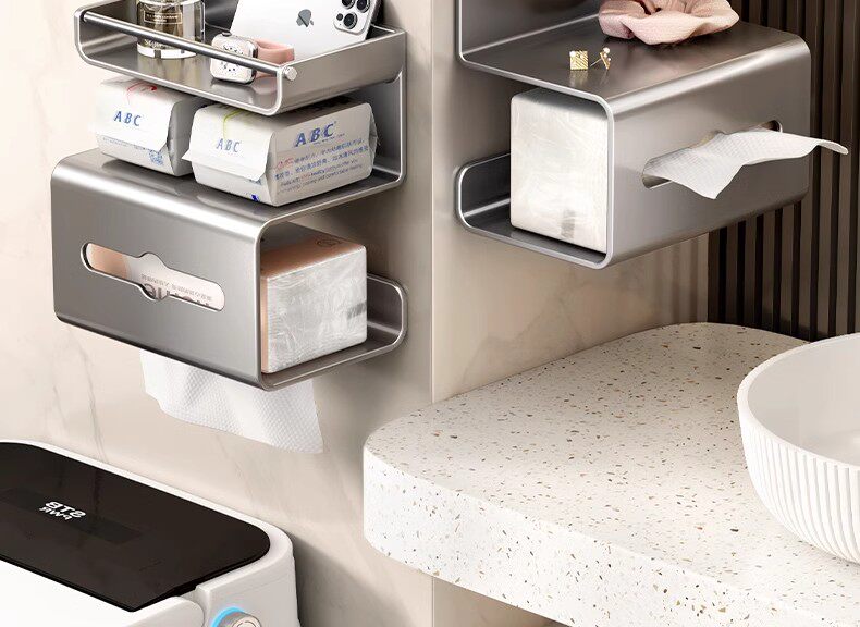 German Precision Bathroom Tissue Box, Punch-Free Toilet Storage Rack, Wall-Mounted Toilet Paper Holder, Bathroom Roll Paper Holder