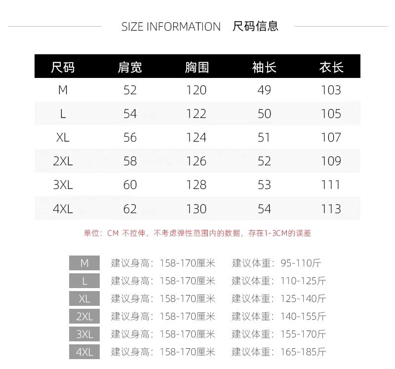 Size Within 160(S) Recommended Weight 40-50kg,165 Within (m) Recommended Weight 100-120,165(L) Recommended Weight 60-70kg,170(XL) Recommended Weight 70-80kg