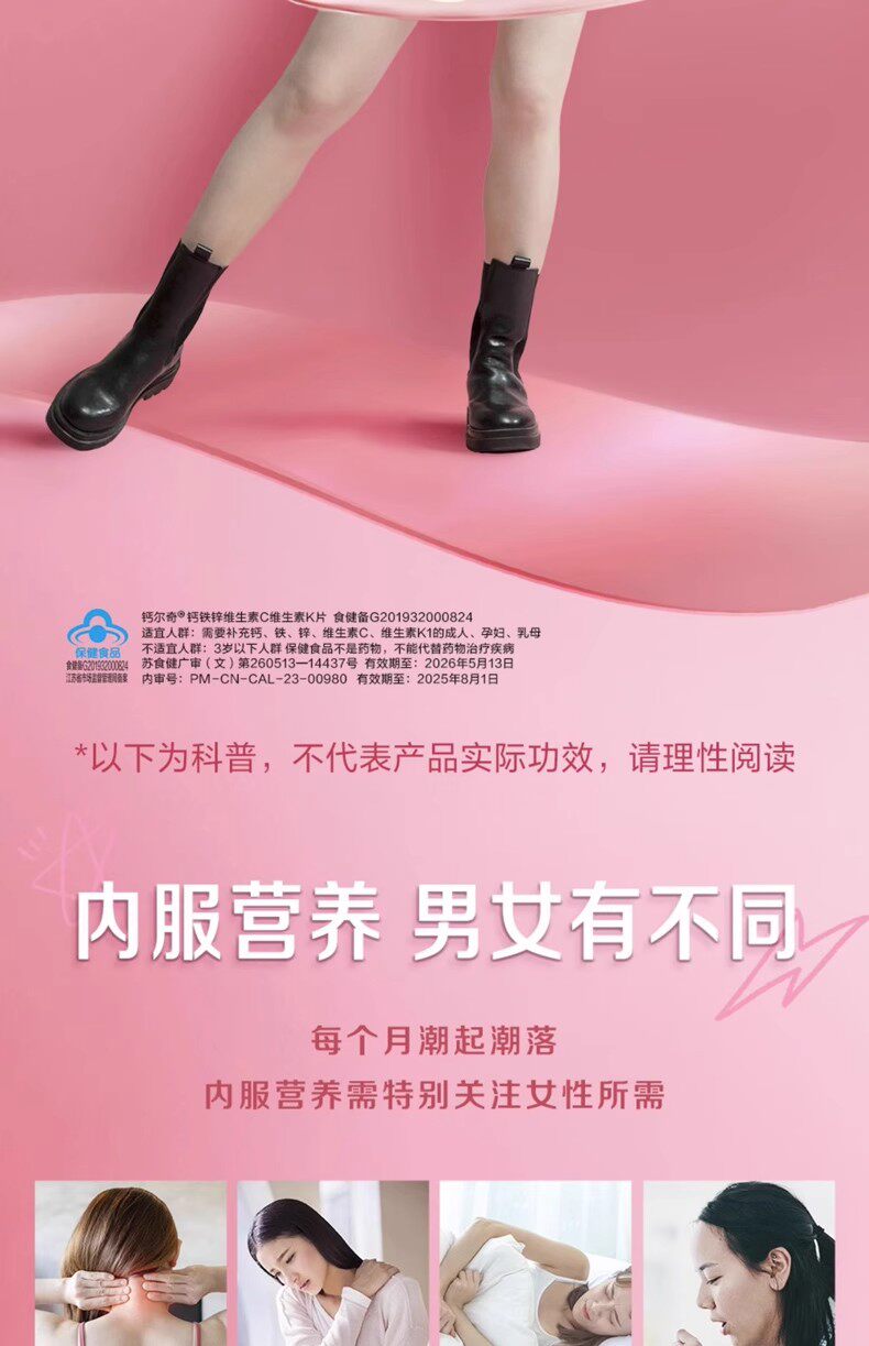 Calcium, Iron, Zinc, Vitamin C, Vitamin K, Women's Calcium Tablets, Men's and Women's Calcium Supplements, Official Genuine Product