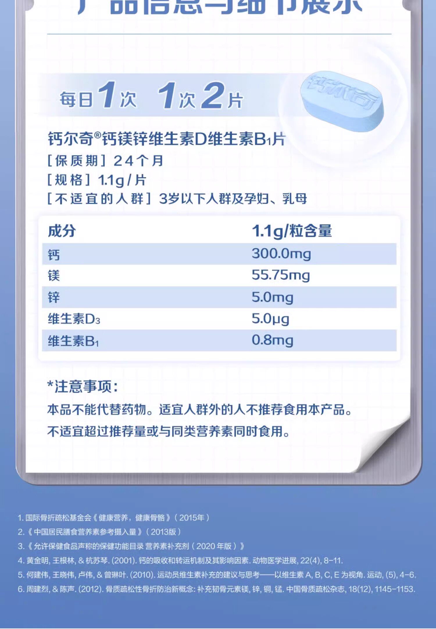 Ingredients Calcium, Iron, and Zinc