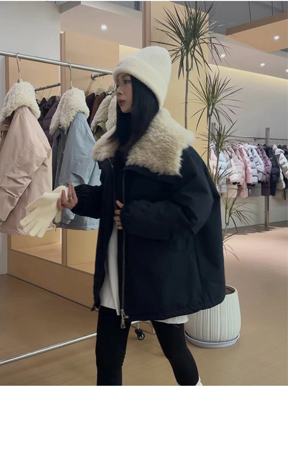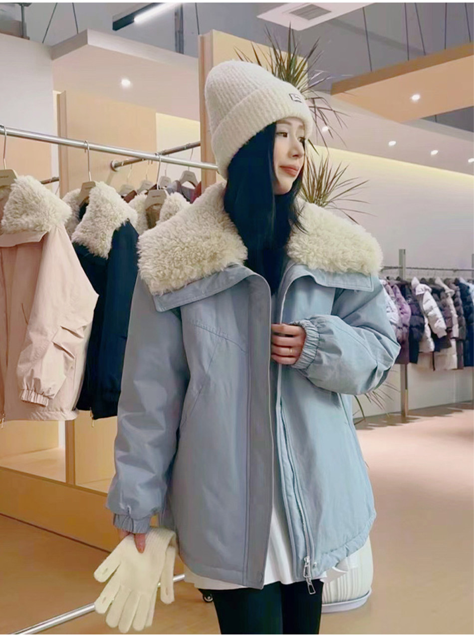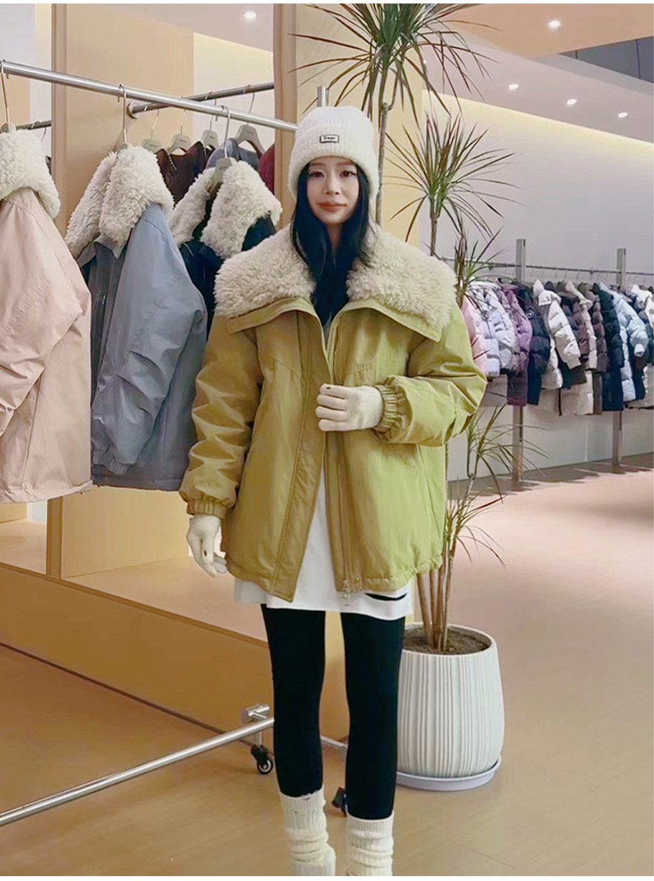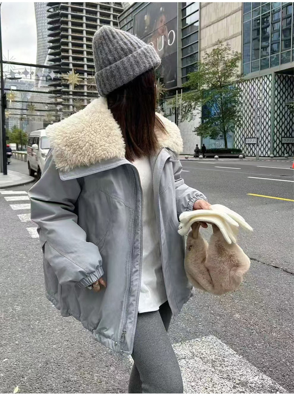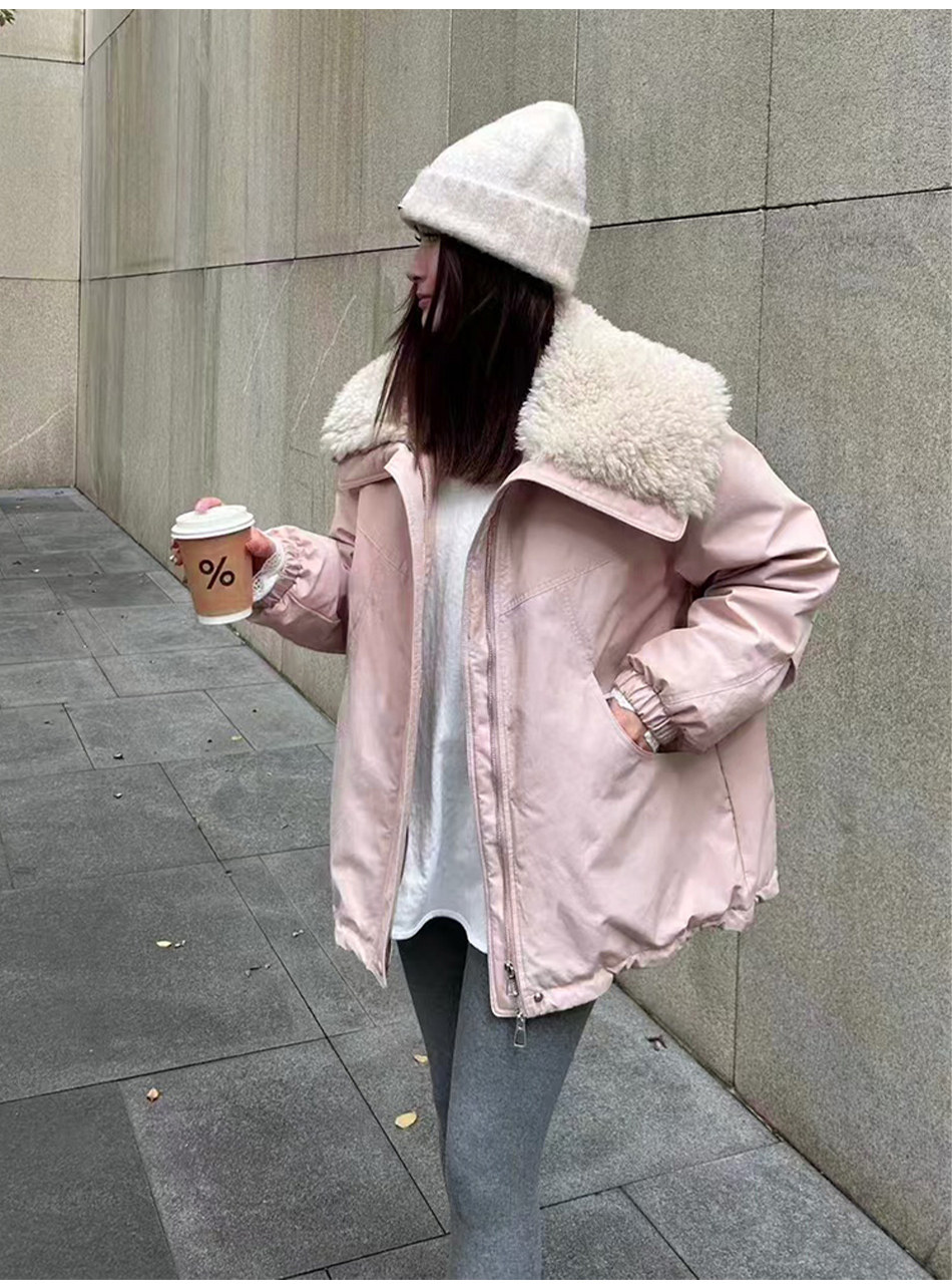 2024 Winter New Fashion Lamb Wool Patchwork Large Lapel down Jacket Women's Mid-Length Parka Casual Coat