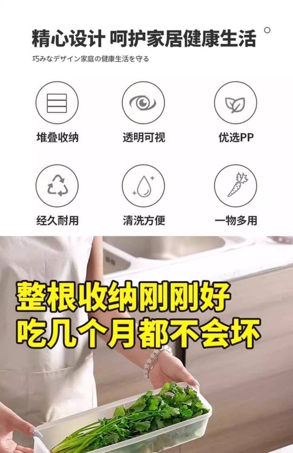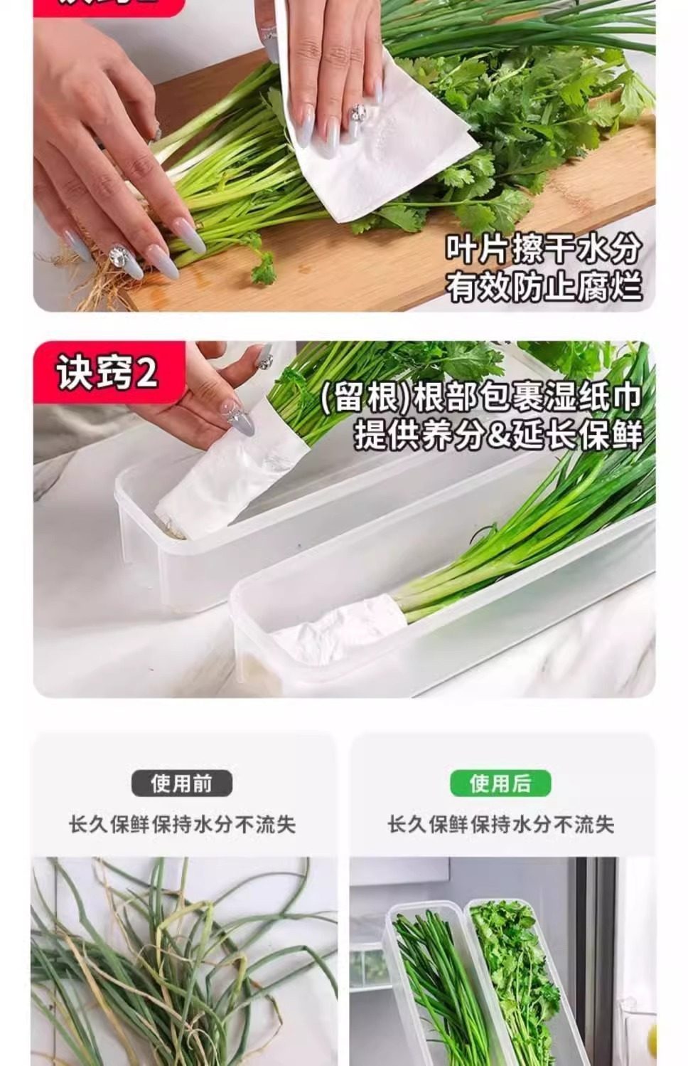 Cilantro and Green Onion Storage Box, Refrigerator Cilantro Whole Stem Preservation Tool, Thickened Version, Noodle and Egg Prep Preservation, Sealed Container