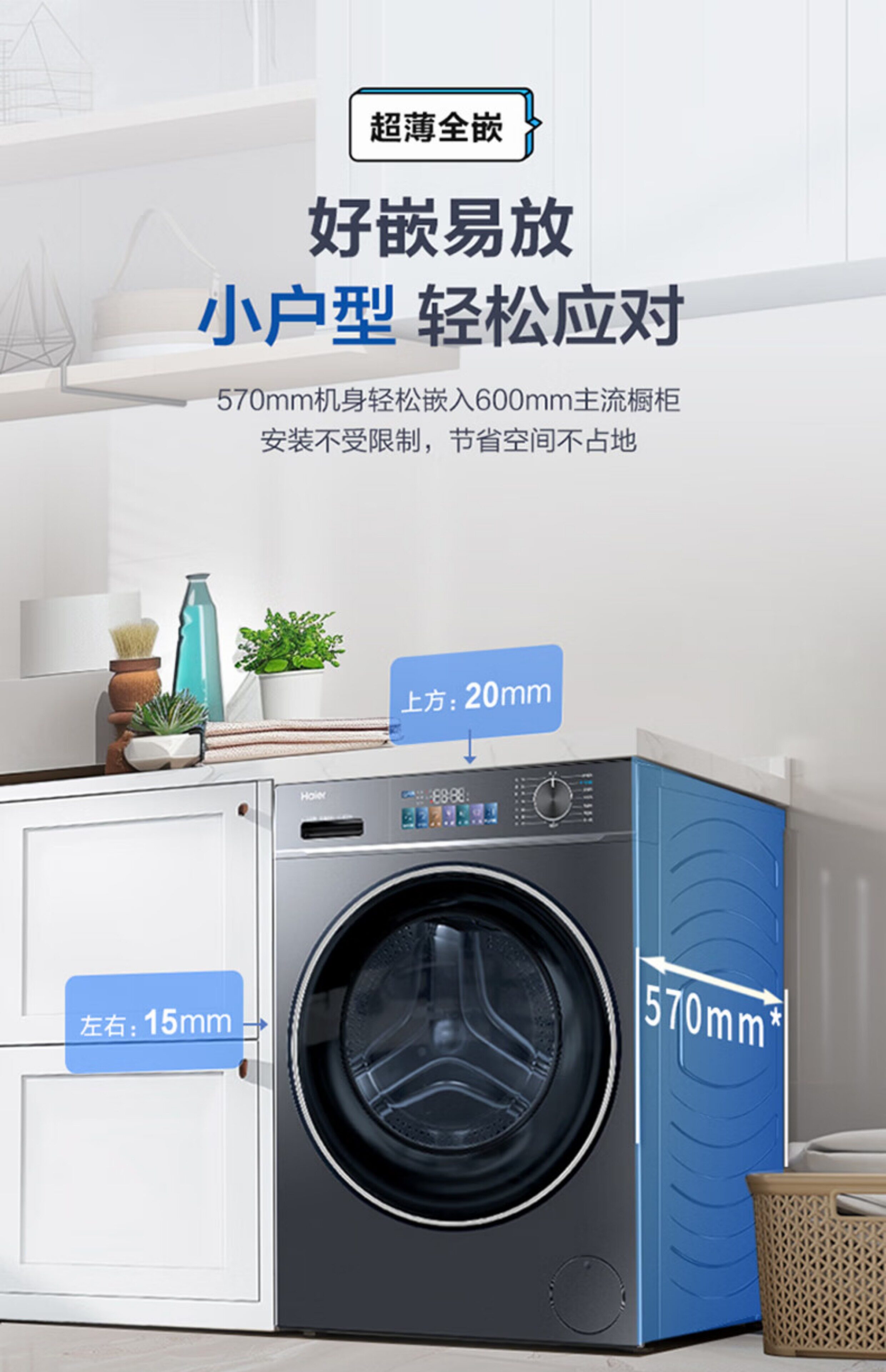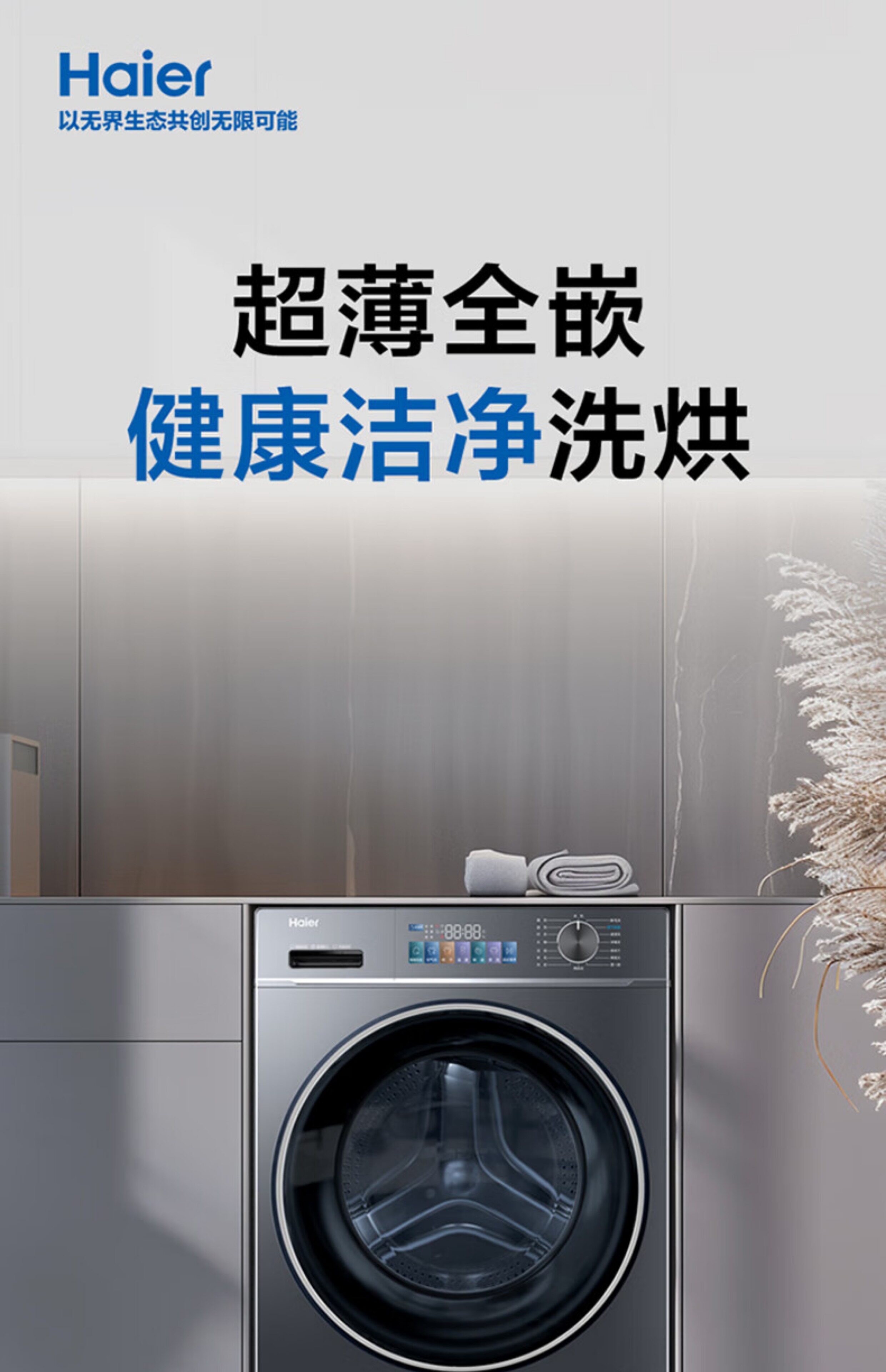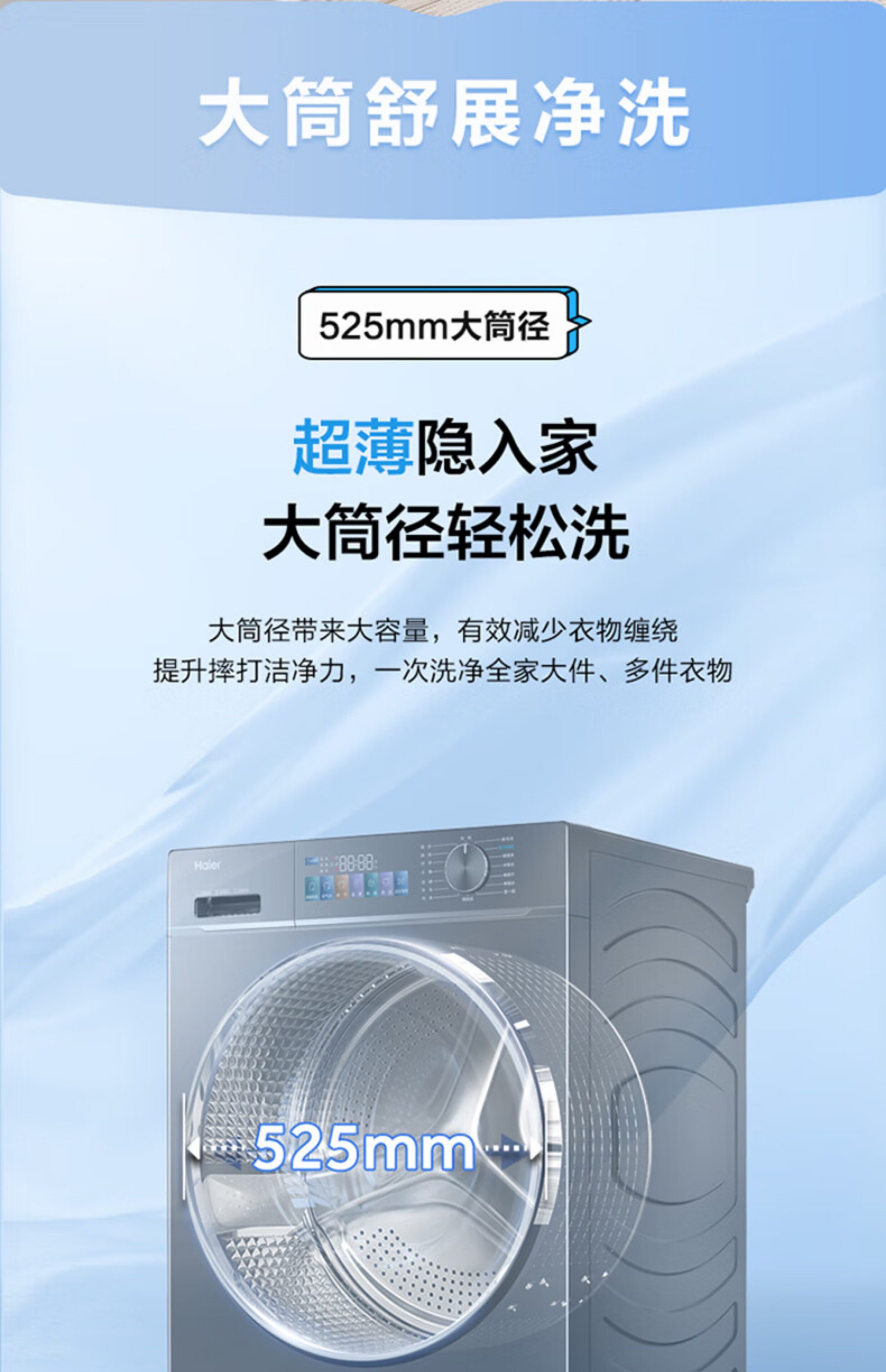 Haier Eg100Hbd68L Ultra-Thin Washing and Drying Integrated Drum Washing Machine with 525 Large Drum Diameter and Intelligent Dual Spray